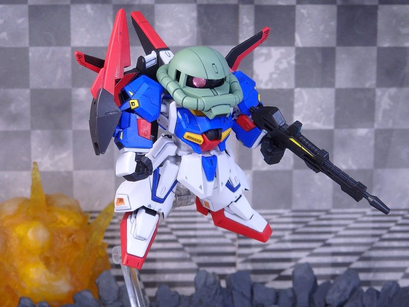 「SDガンダム クロスシルエット ゼータガンダム」と組み合わせることで機動戦士ガンダムZZに登場したZザクが無改造で再現可能。