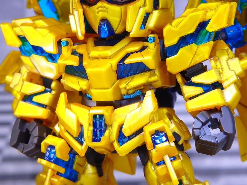 露出したサイコフレーム部は過去に発売されたSDキットのユニコーンガンダムよりもよりパーツが細分化されておりパチ組でも十分なくらい綺麗な外見で組み上げることが出来ます。