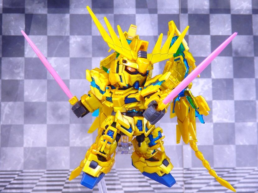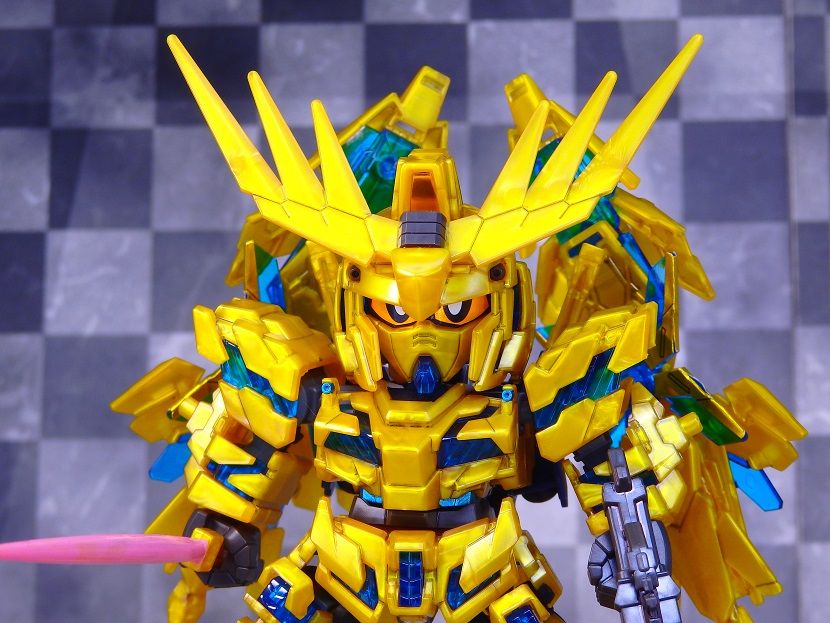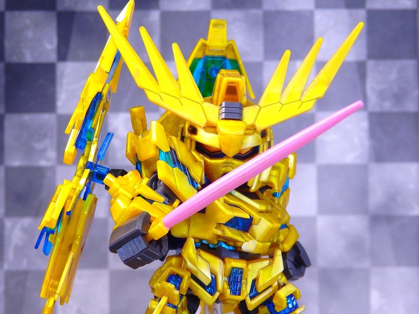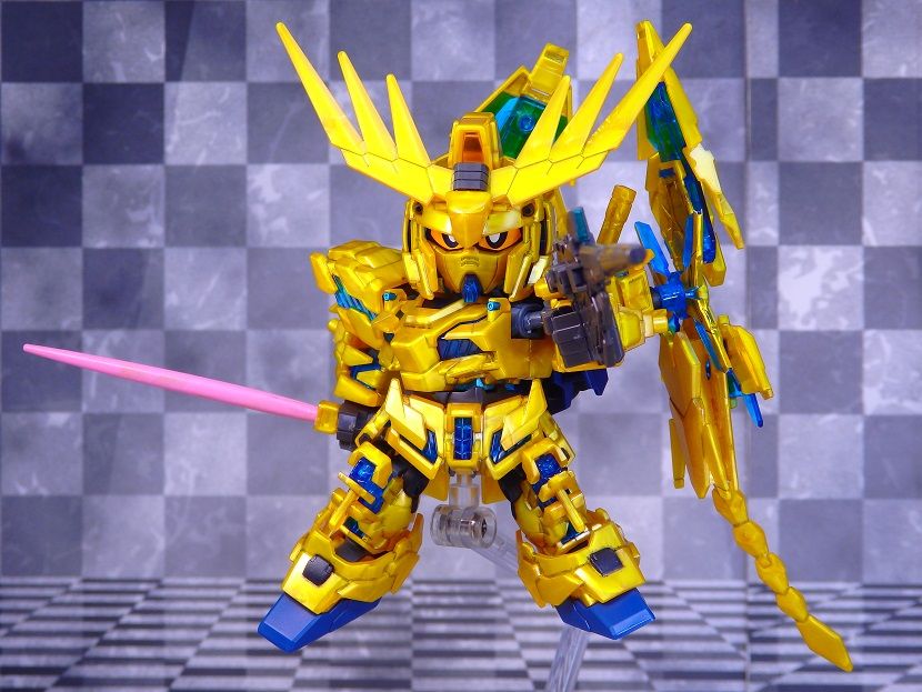 サイコフレームの複雑なパーツ構成がSDながらも見事再現されています。