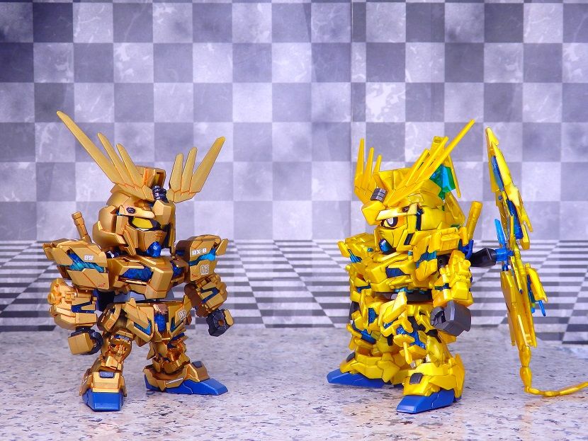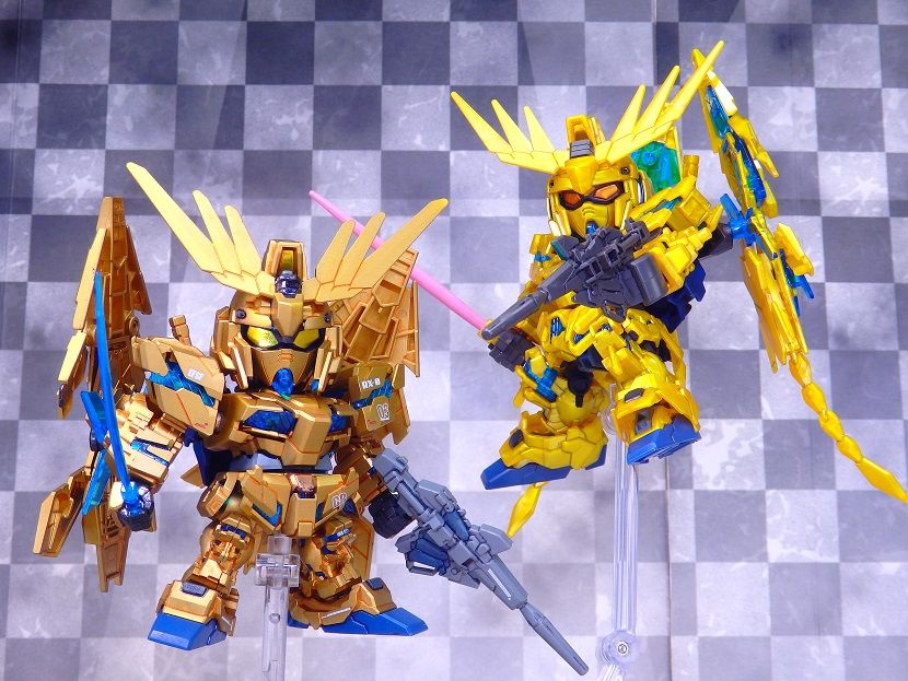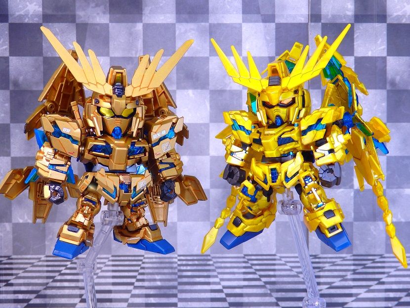 2014年に発売された「BB戦士394 ユニコーンガンダム3号機 フェネクス」と並べてみました。