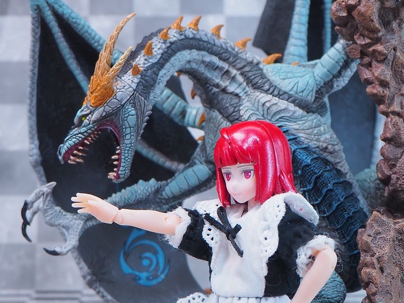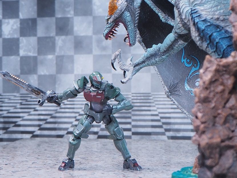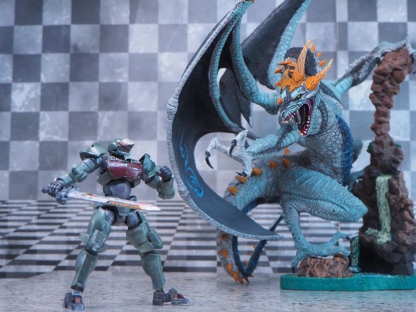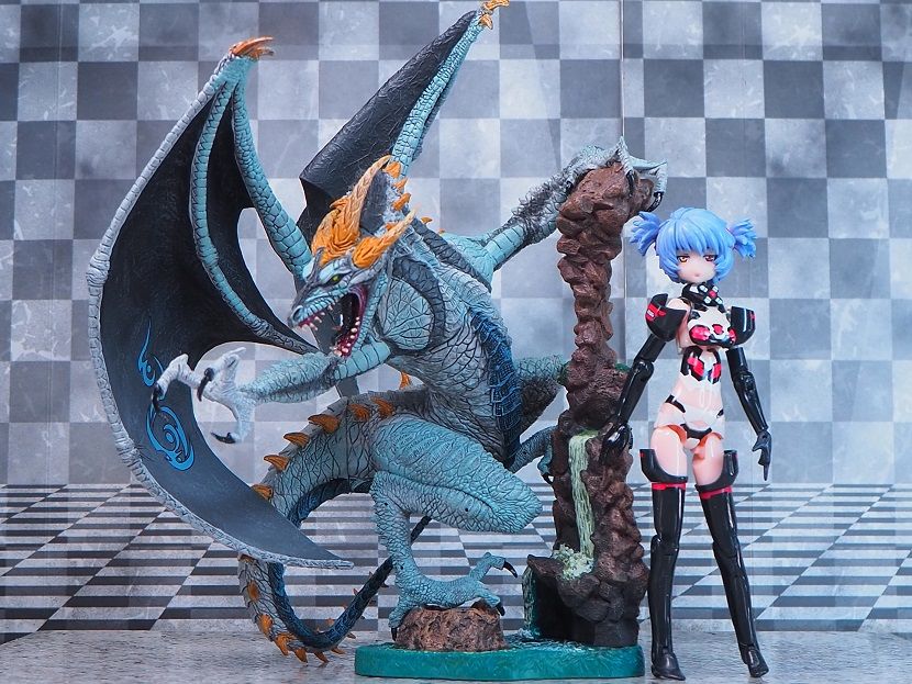 台座はジオラマ風でドラゴンのサイズ感を表す演出になっています。