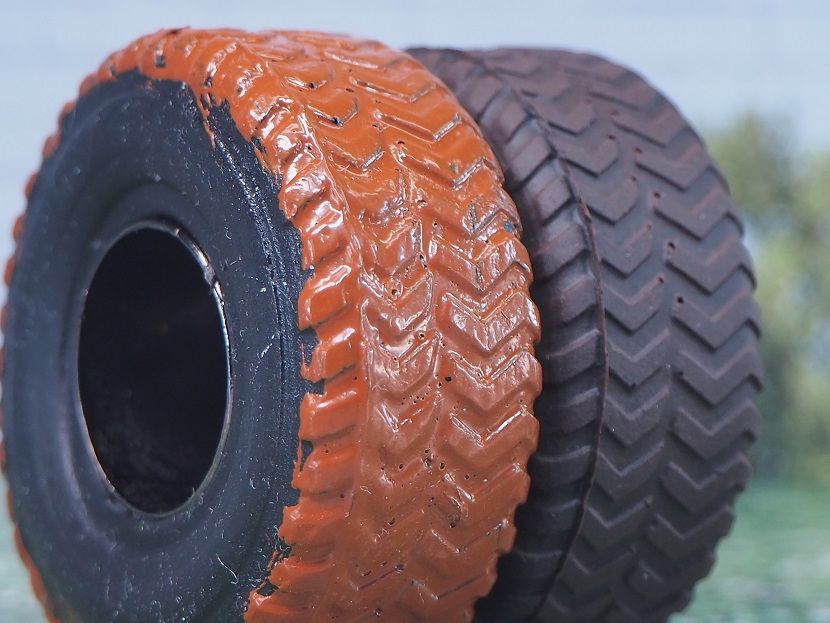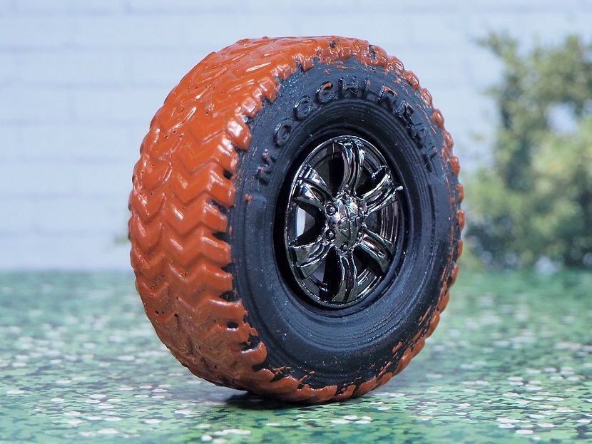 見比べるとさばくタイヤのほうは薄っすらとした汚れが表現されてますね。