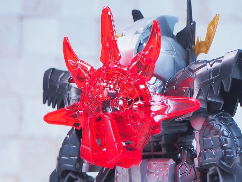 目に当たる部分はクリアパーツになります。なんとなくG1のグリムロックカラーで塗ってみたい感じ。