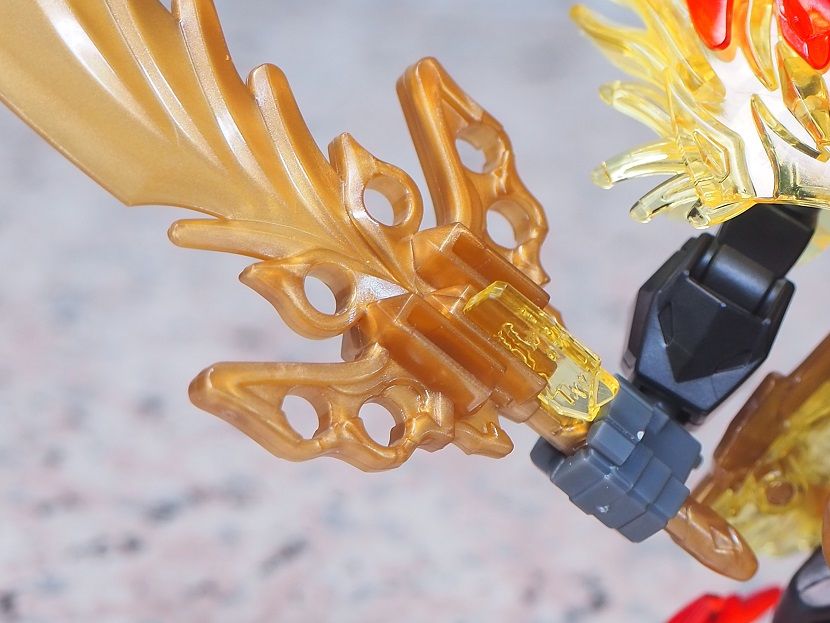 ゴールドフレームということで腕部は左右非対称のデザイン。左肘は一部ゴールド成形のパーツになっています。