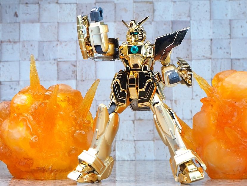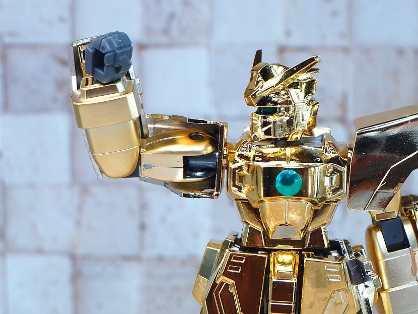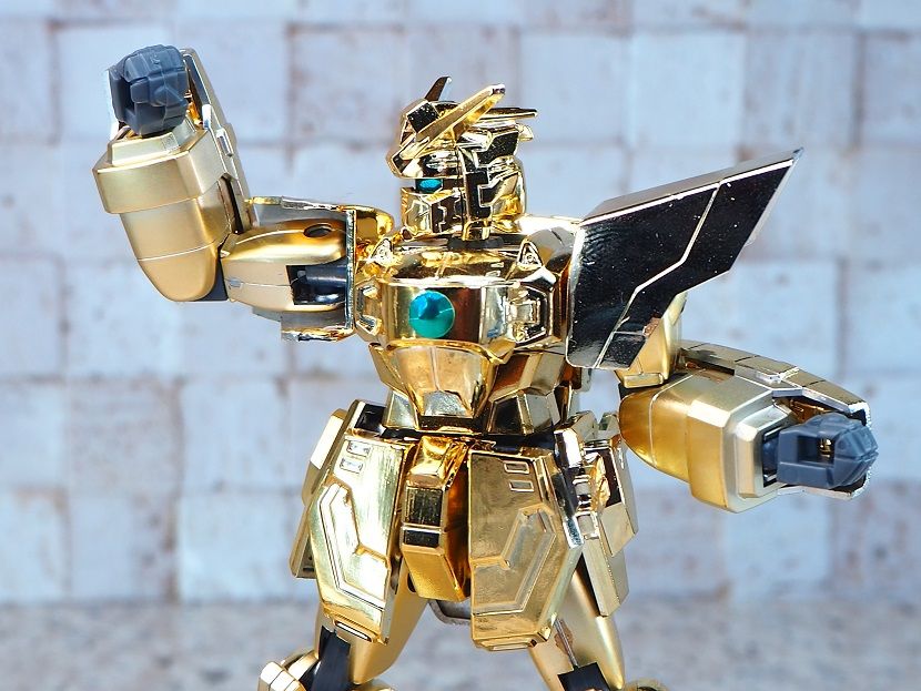 全身ゴールドメッキでツインアイ、頭部センサー部、胸部の一部がシールでの色分け。