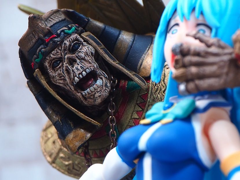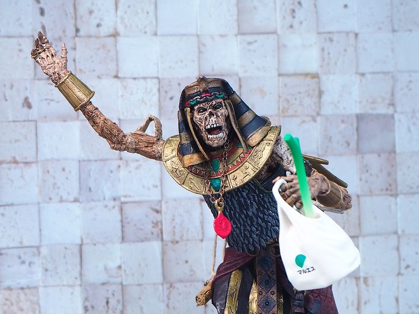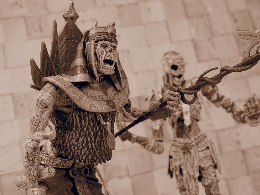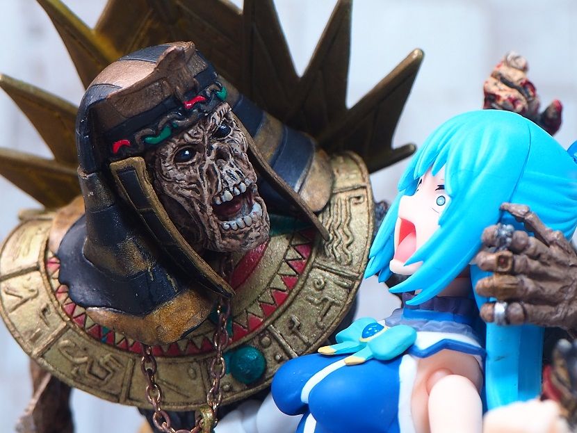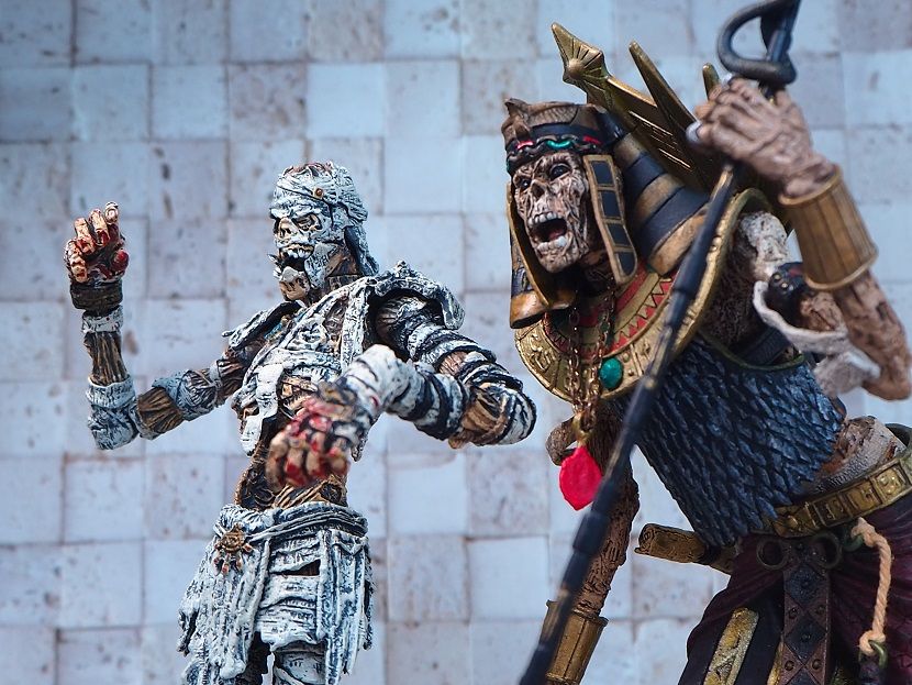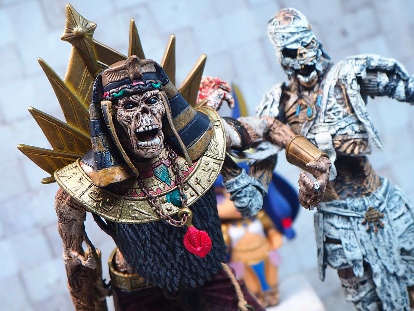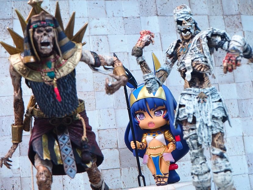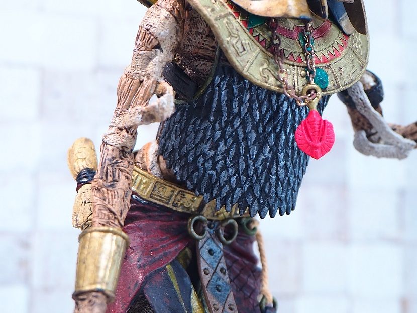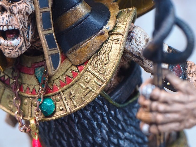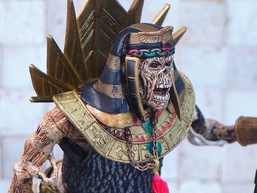 顔はミイラで皺だらけ、瞳は真っ黒の塗装になっています。