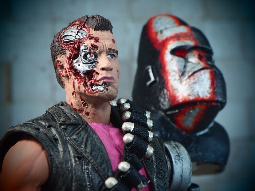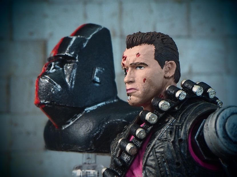 で今回塗った新作。ターミネーターのT-800がモチーフでアメトイ(NECA)とかでよくあるダメージ表現をオマージュした感じです。