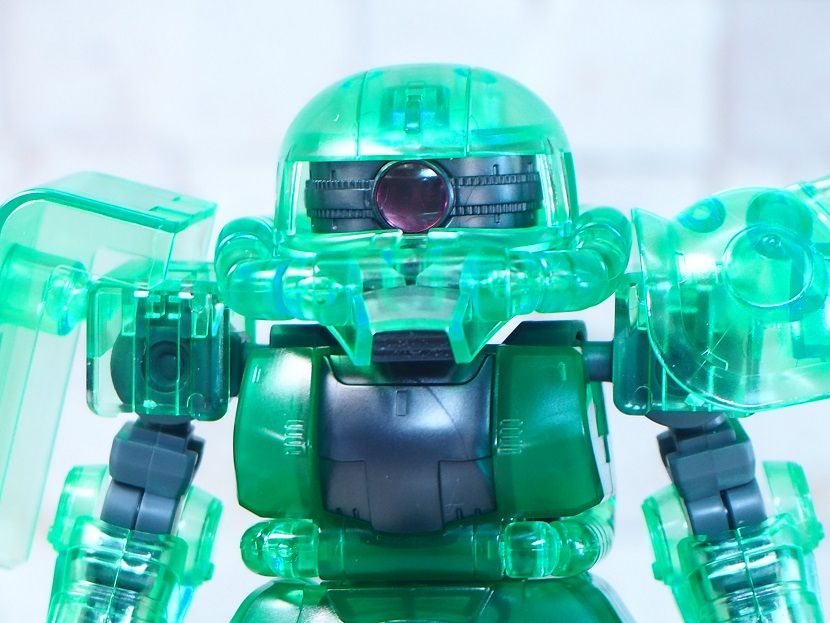 外装のグリーン、モスグリーン部分がクリアパーツ成形、モノアイレールなどの内部、ブラック成型のパーツは通常キットと同じです。
