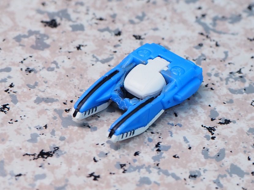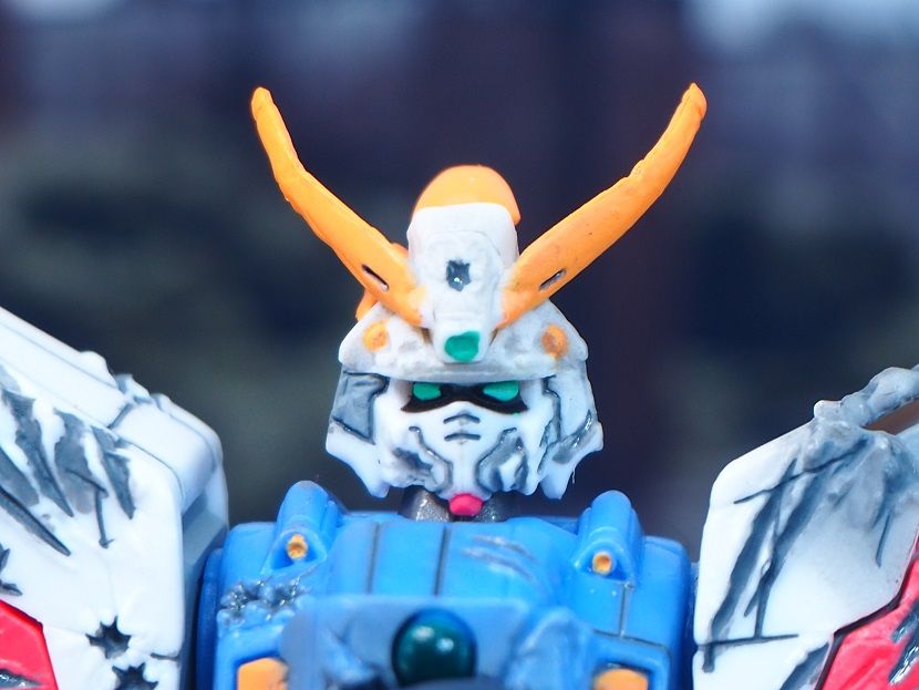 フィールドリダクションフィン、リトラクタブルダクト、フェイスカバーが開いた状態の頭部。 スーパーモード時のヘッドにパーツを差し替えます。