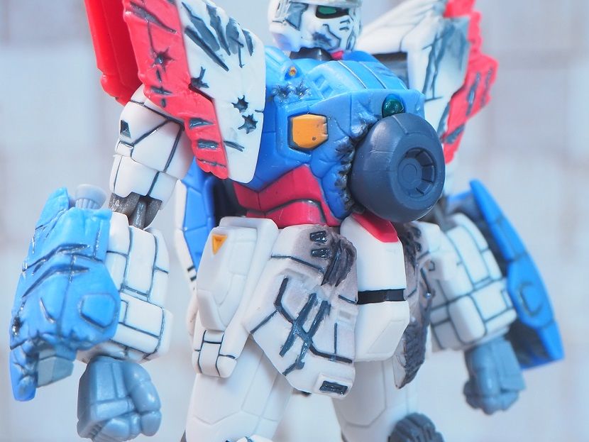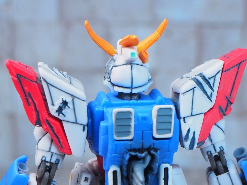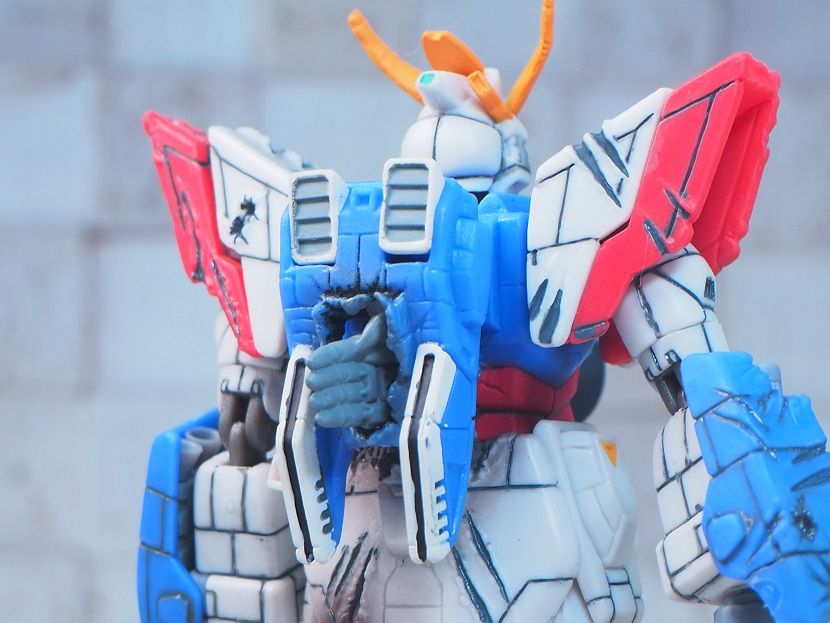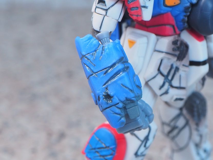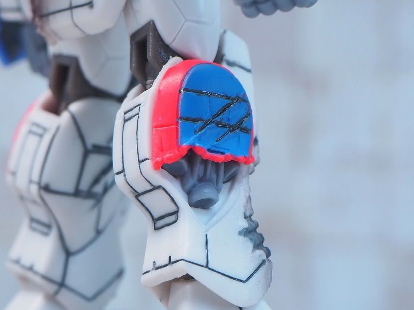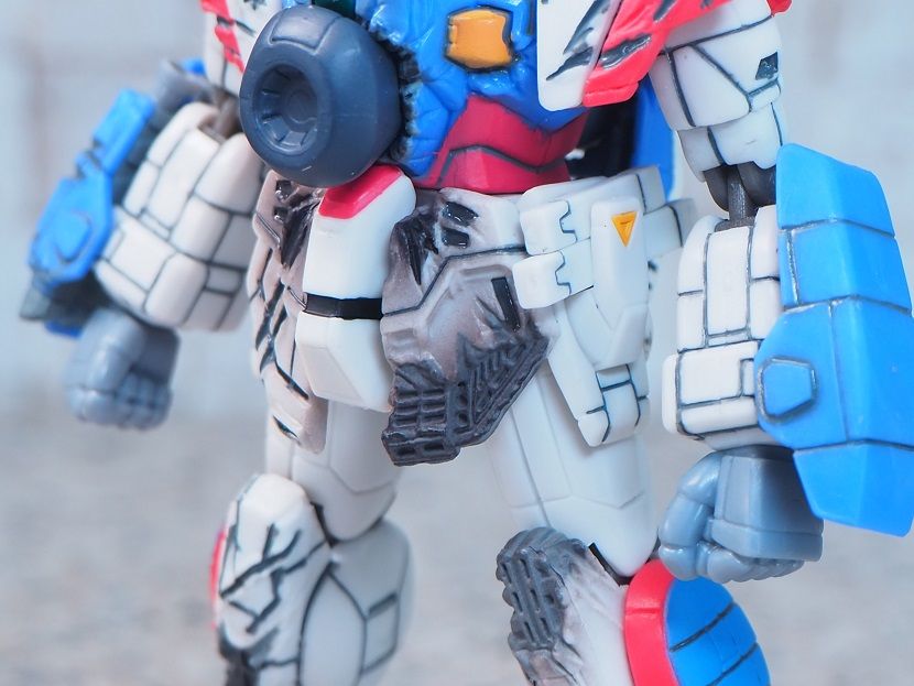 一見ただボディに傷が付けてるだけのように見えるんですが、各部をよく見ると内部メカディテールやダメージ後の装甲の膨れといった細かな表現になっていますね。