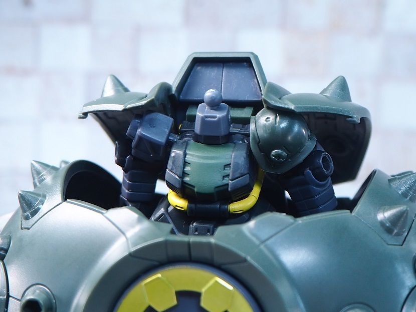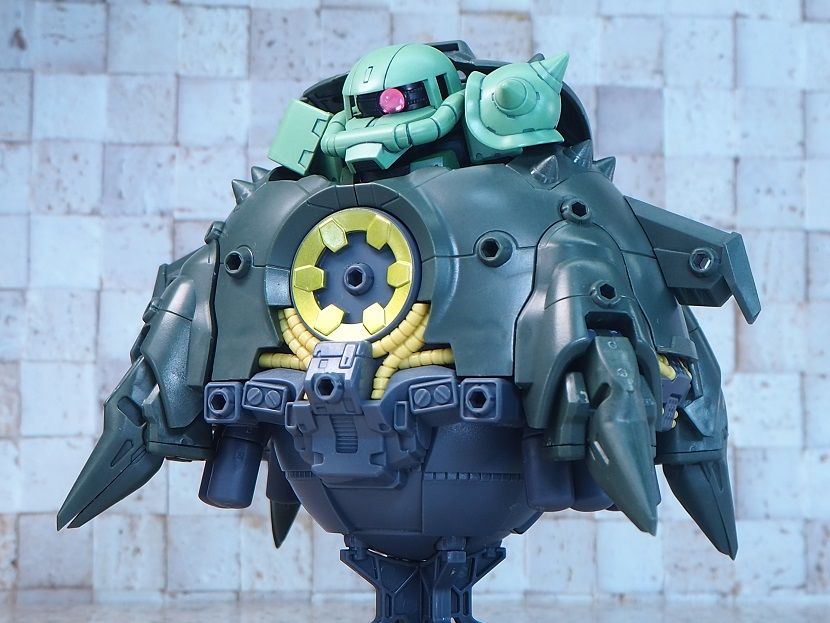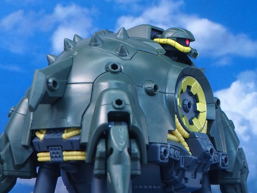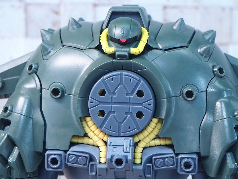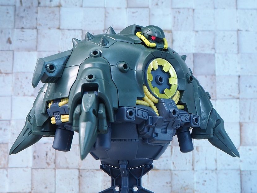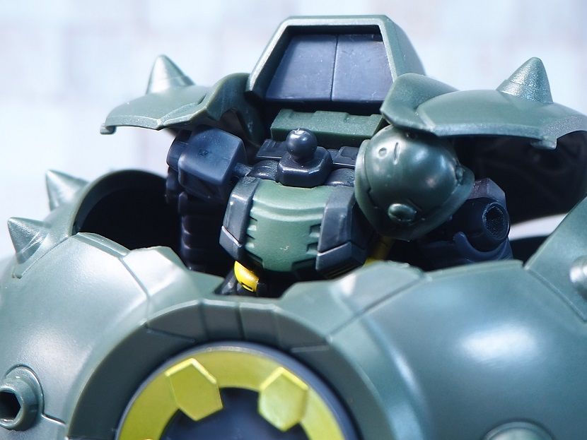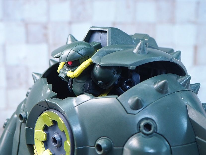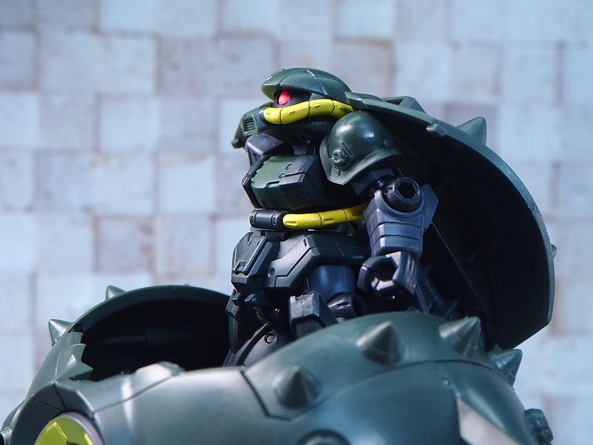 モスグリーンの地味なボディカラーに対して濃いレッドのモノアイがいいアクセントになっていますね。