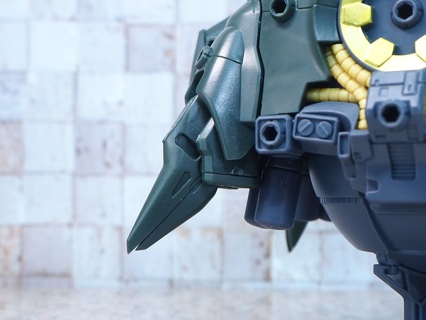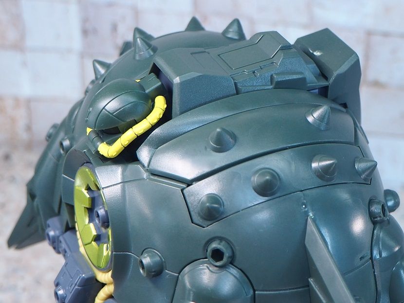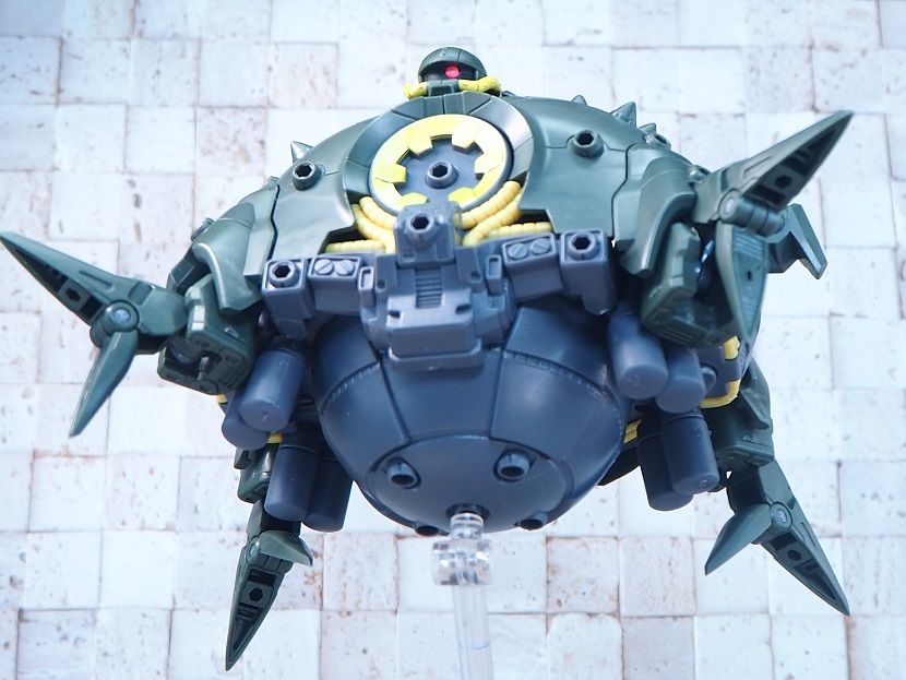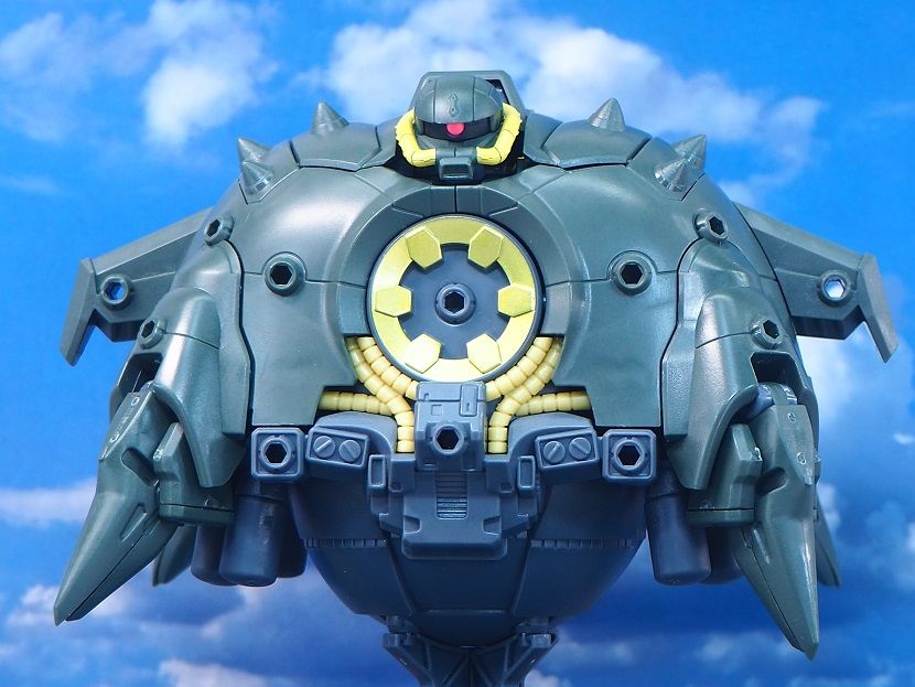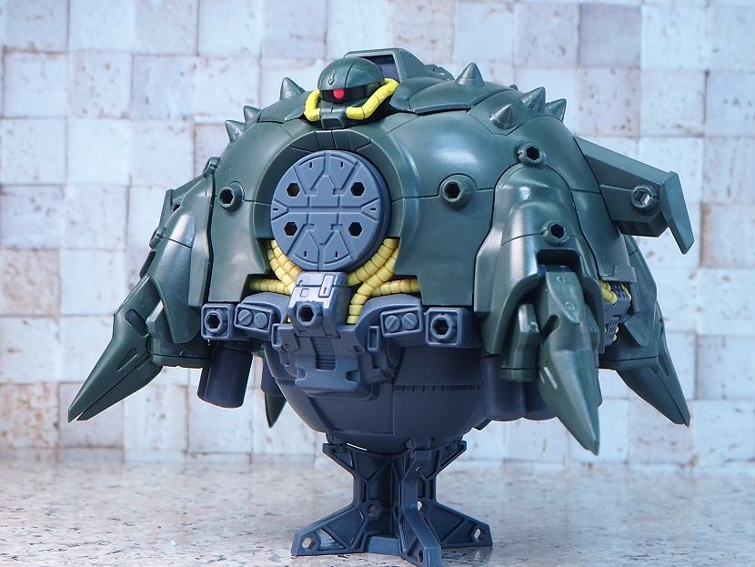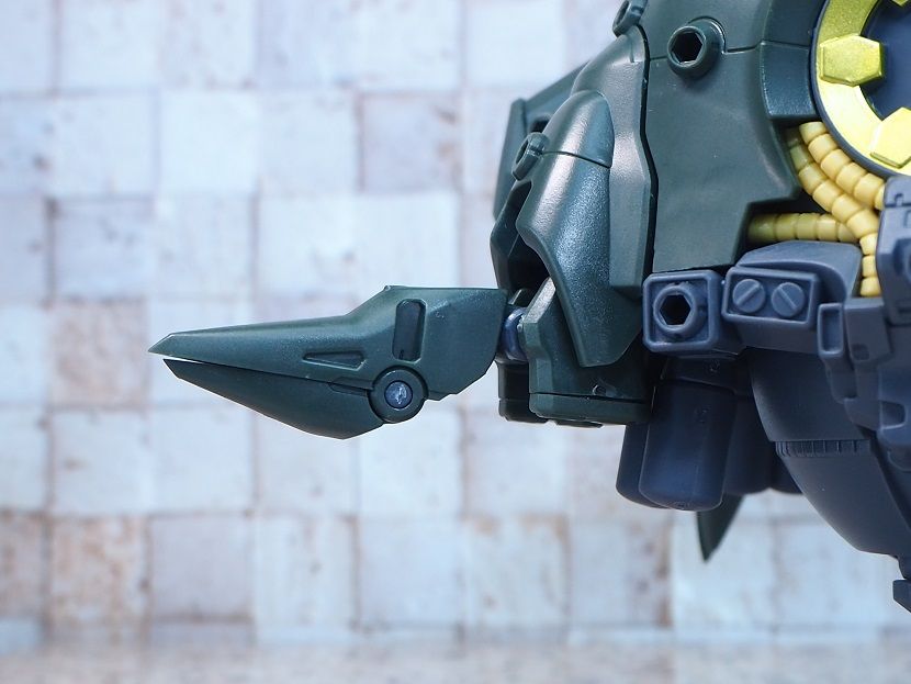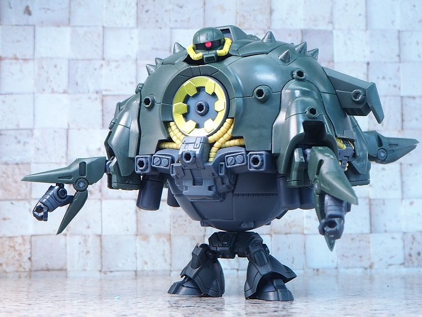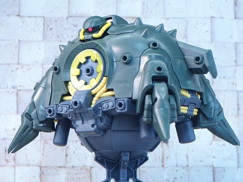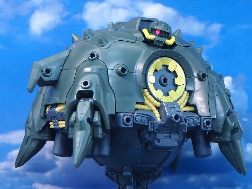 モスグリーンの地味なボディカラーに対して濃いレッドのモノアイがいいアクセントになっていますね。