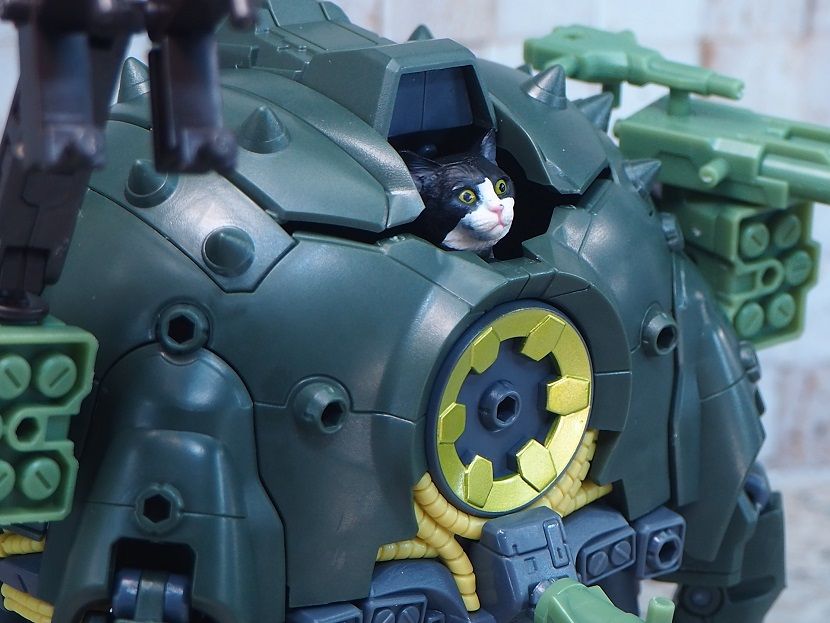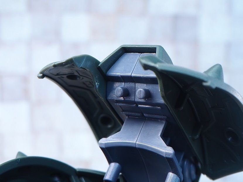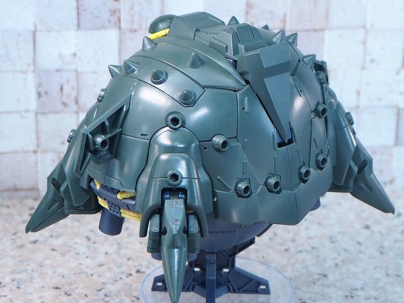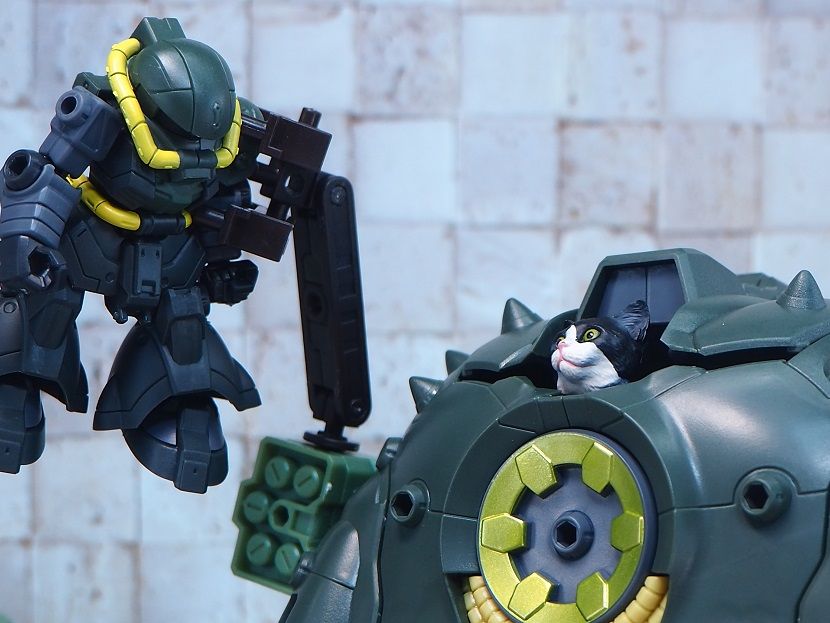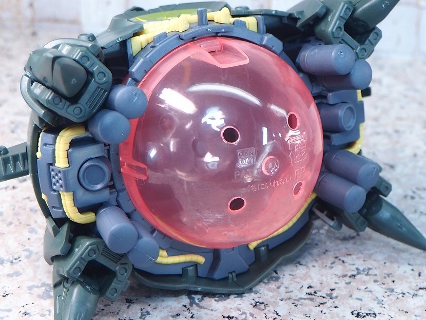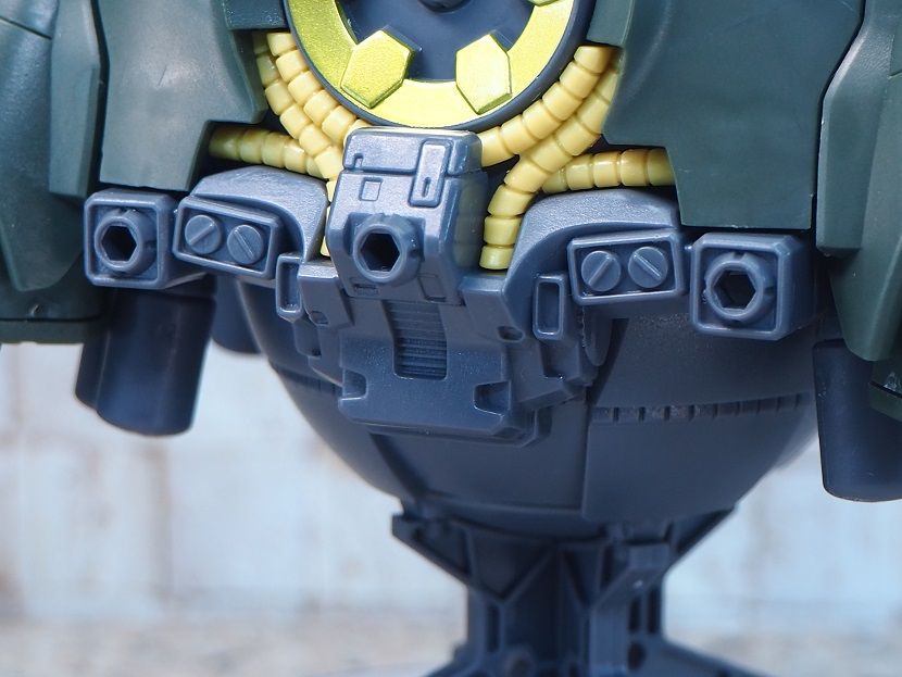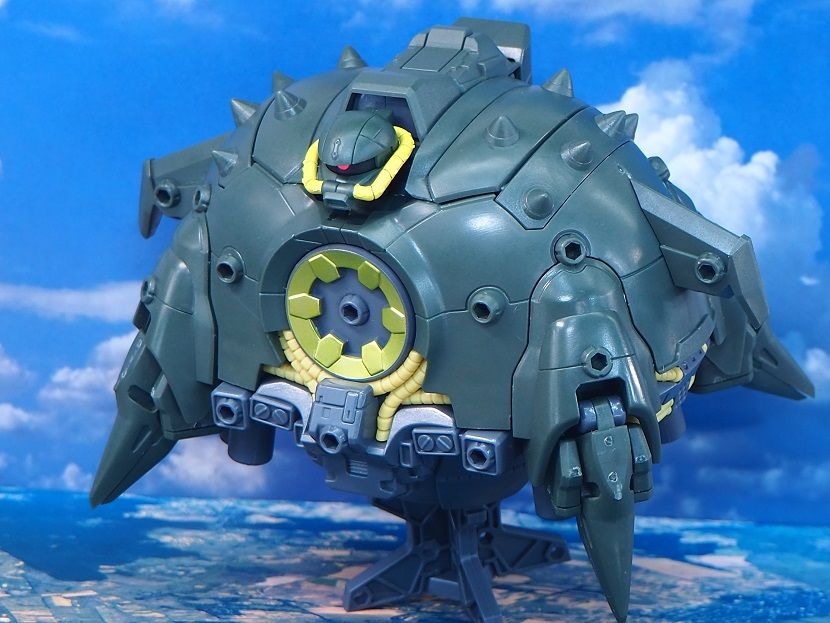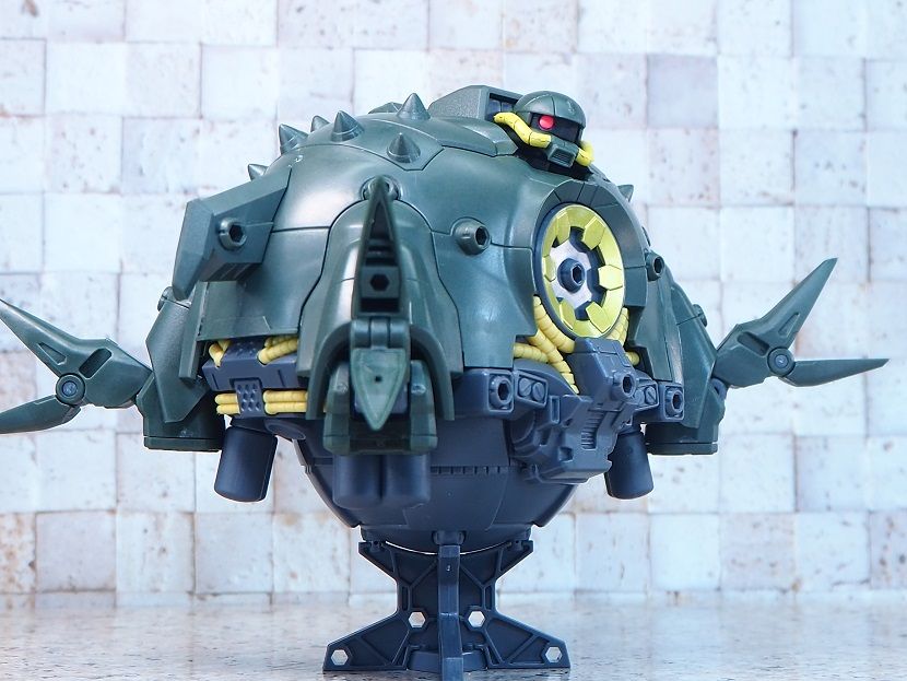 モスグリーンの地味なボディカラーに対して濃いレッドのモノアイがいいアクセントになっていますね。