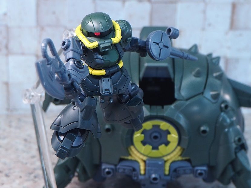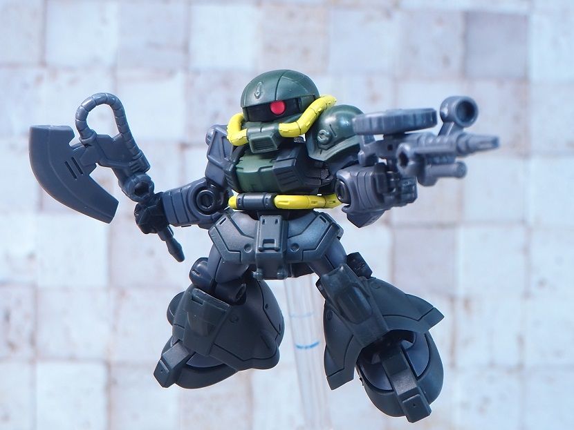 ザクの頭部は「モビルスーツアンサンブル09」にラインナップされていた「高機動試作型ザク」と同じ造形。