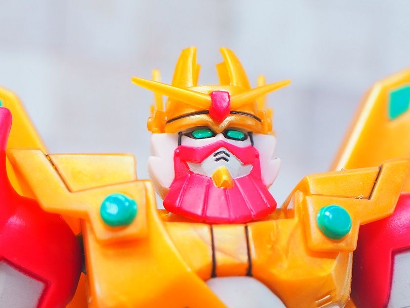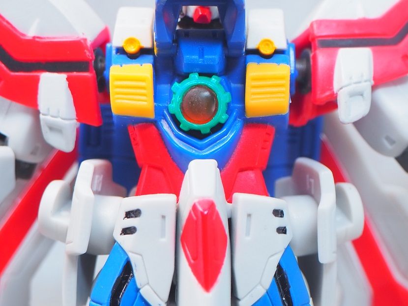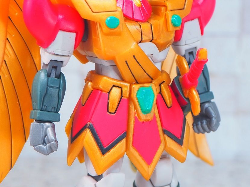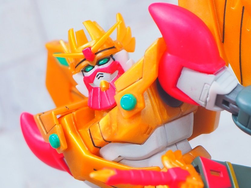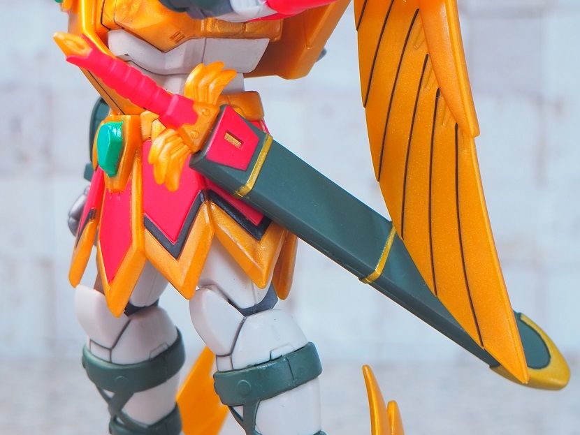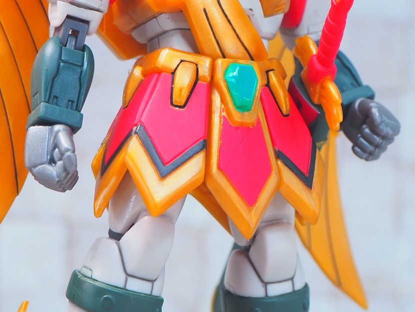 主な成型色はゴールドを意識したイエローで、胴回りのホワイトやグリーンのカラーは塗装で再現されています。