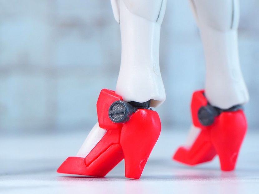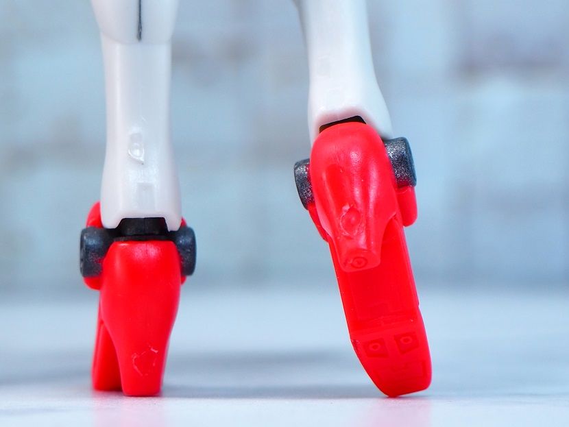 うしろ髪パーツの重さと接地が悪いハイヒール形状の足パーツの影響で、バランスが悪くスタンドかなにかで少し支えないとうまく遊べません。