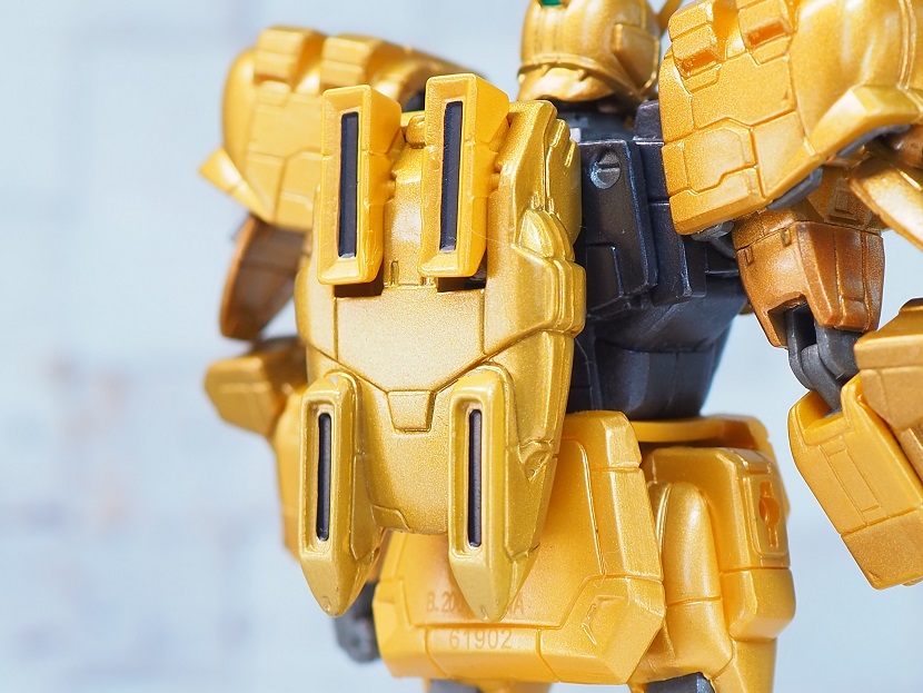 よく見ると2色のゴールドカラーで色分けされています。脚部は少々塗装が甘めで成型色の部分が見え隠れ。