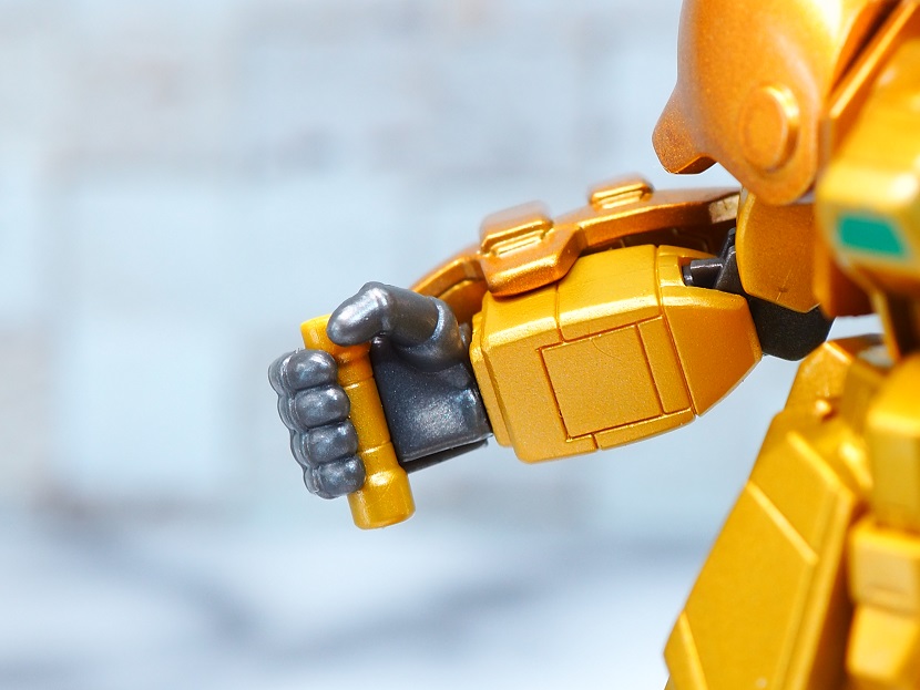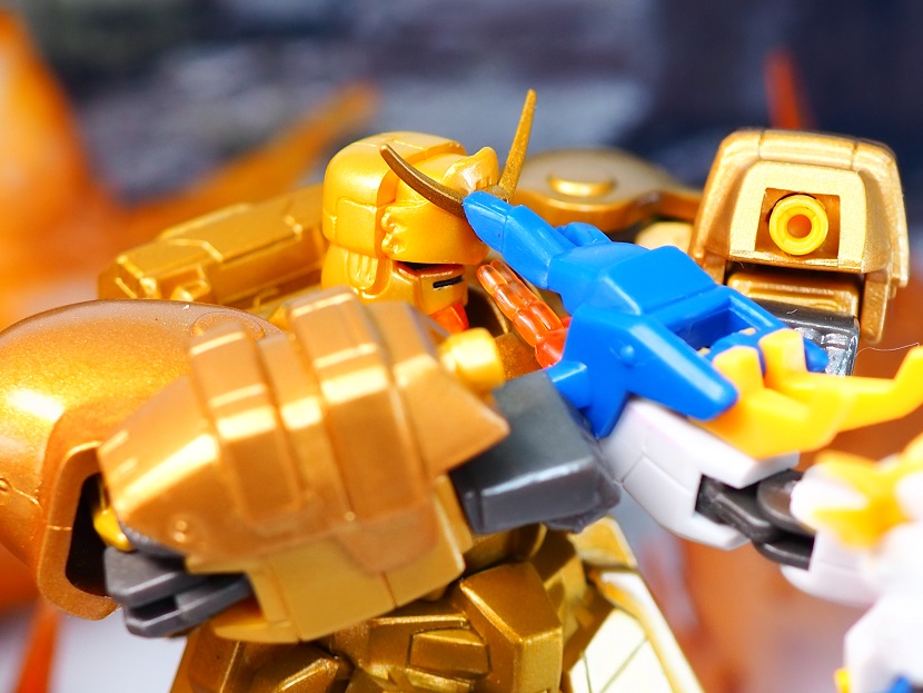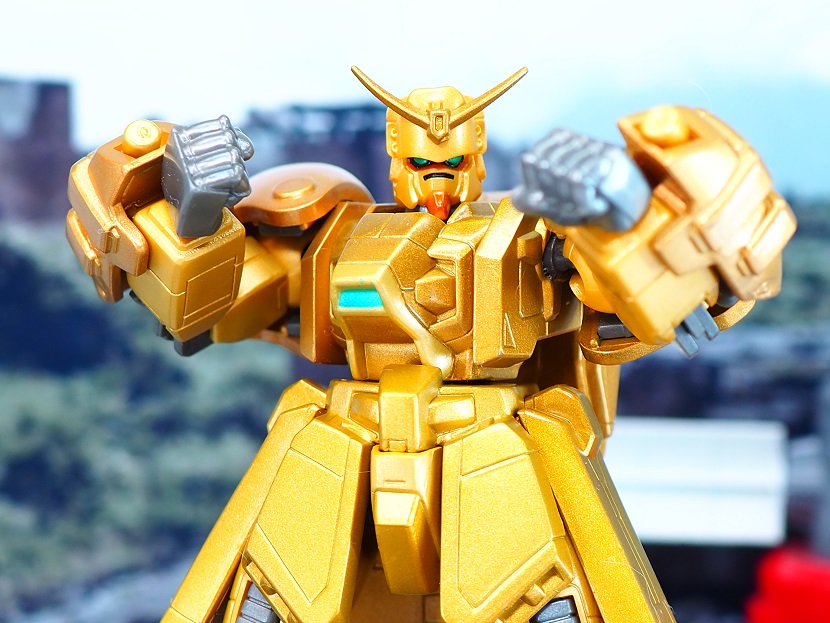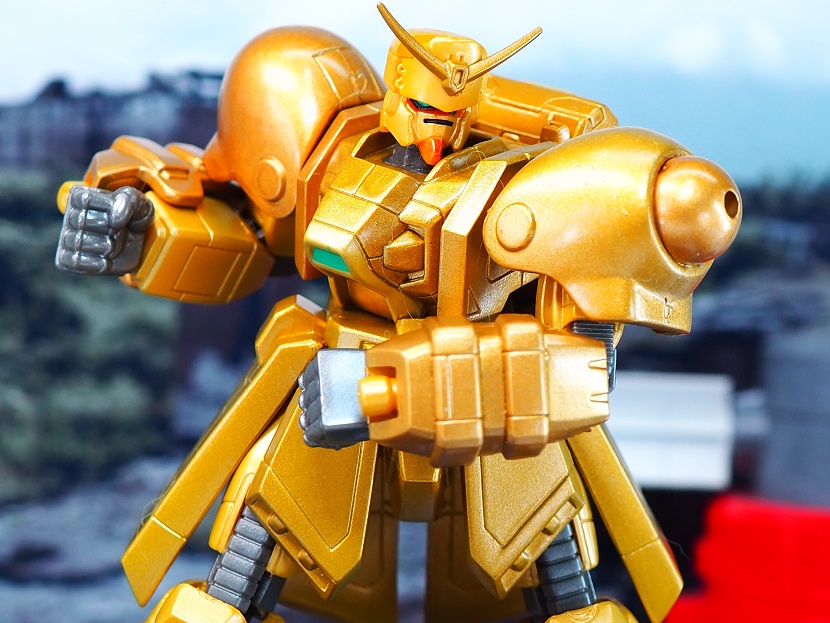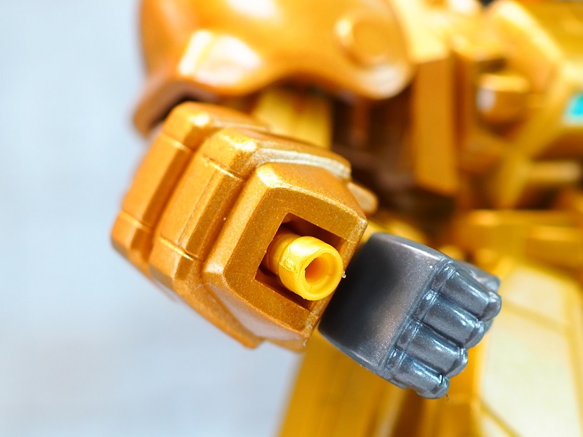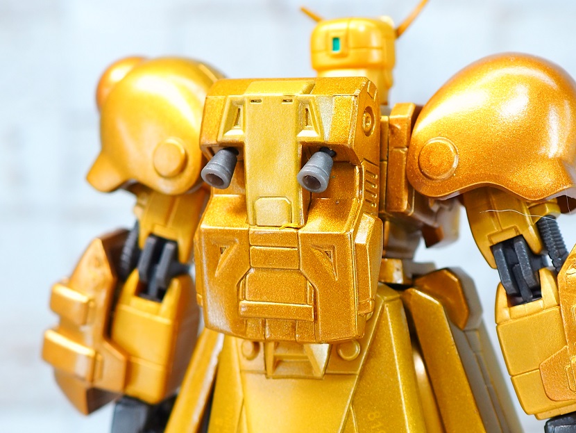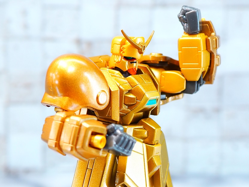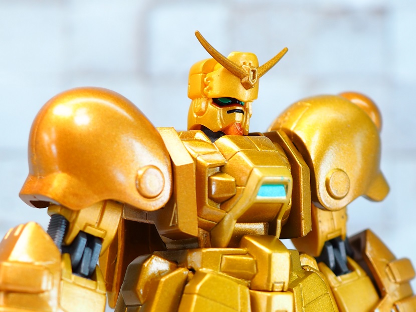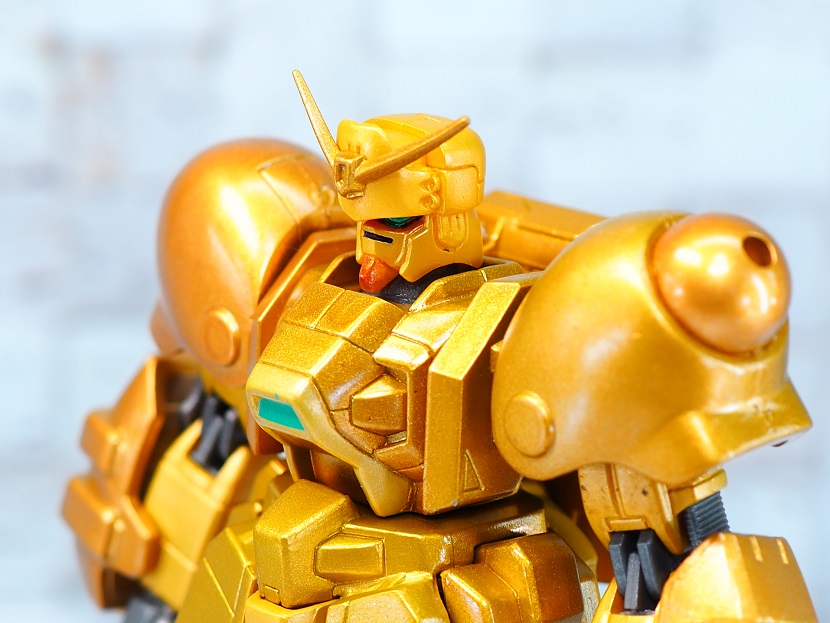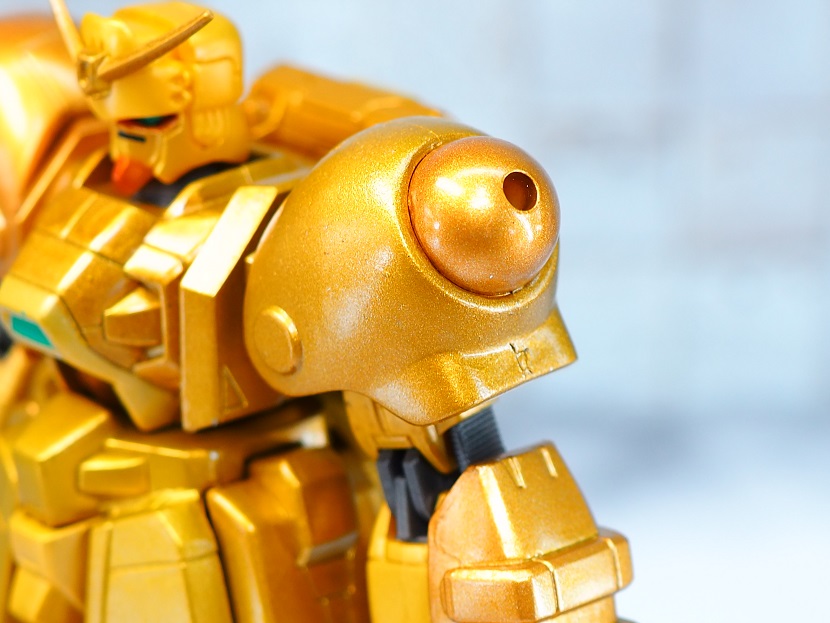 全身ゴールドカラーですが口の部分やツインアイ、頭部アンテナなど部分的に色分けされております。