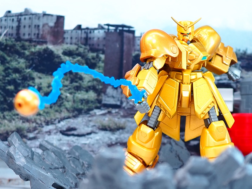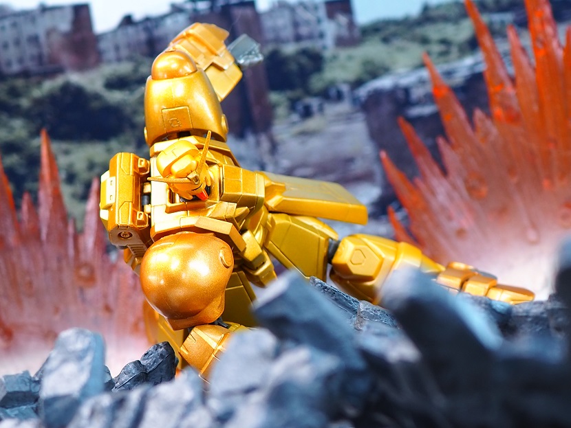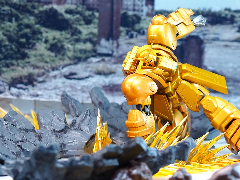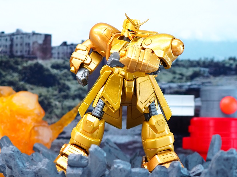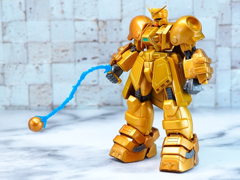 「MIA ボルトガンダム」のカラバリになるため造形面での変更点はありませんが、全身ゴールドカラーに塗装された特別感溢れる仕上がりなっております。