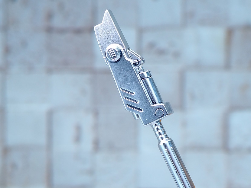 刃を開いたバスターシールドの先端部に挟み込むように取り付け。