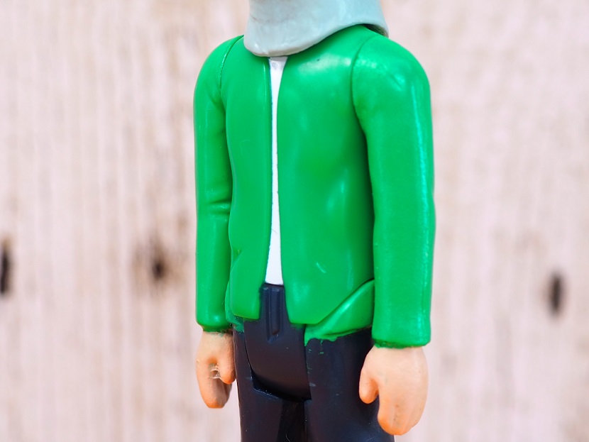 緑の少しラフな洋服。ちなみにボディはプラスチック製で手、脚、頭はPVCが使用されております。