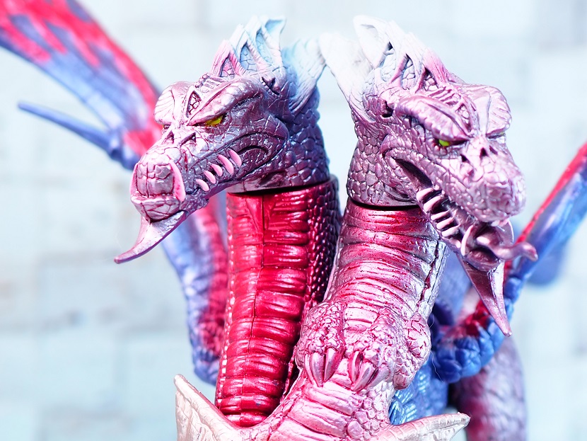毒々しい紫色のボディカラーと2つの頭が特徴的なメデューサドラゴン。