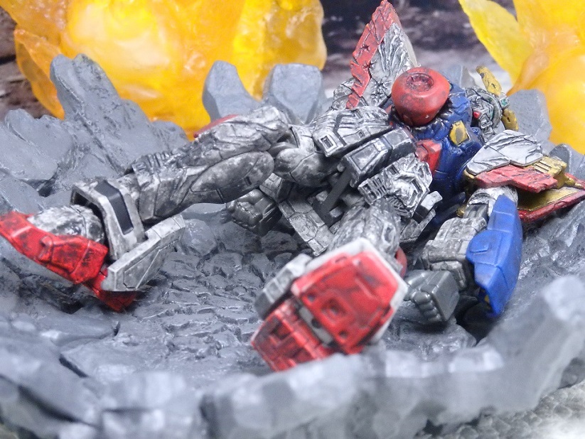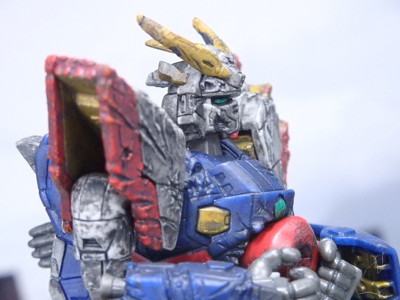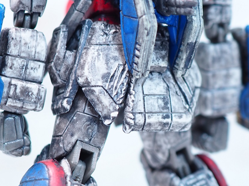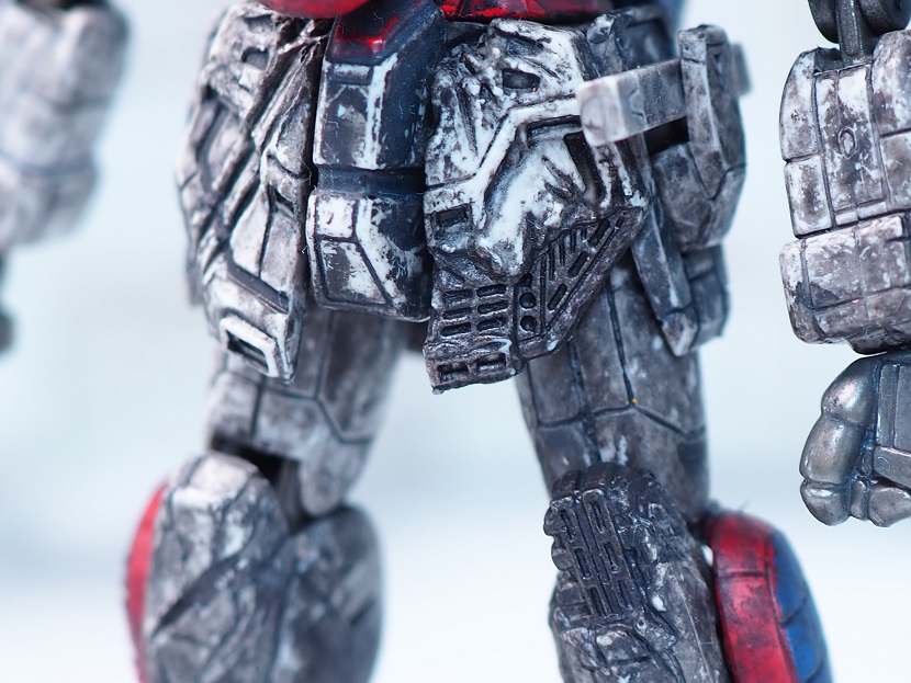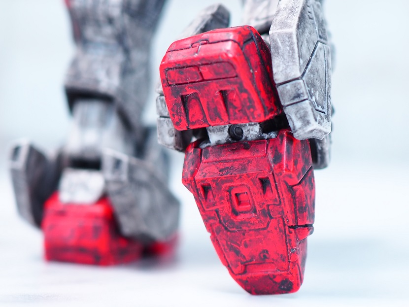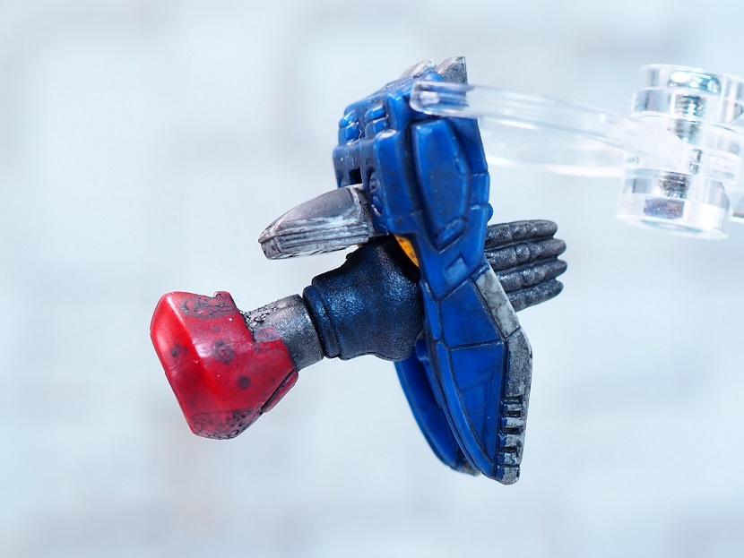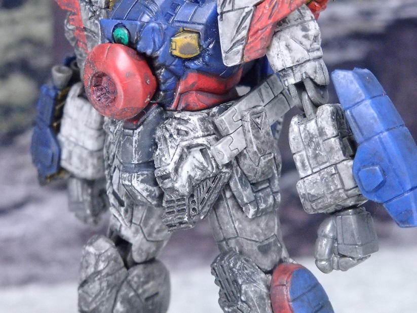 こちらはUSバンダイのみで発売された「BATTLE SCARRED」シリーズでボディには汚し塗装とダメージ処理のディテールが新たに追加されております。