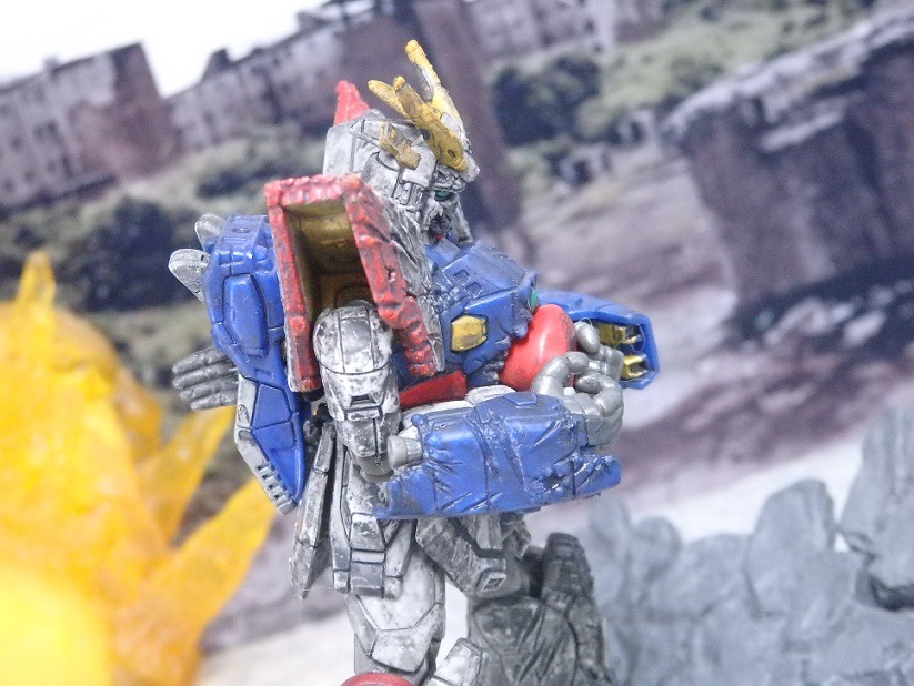 こちらは貫通したマスターガンダムの手刀が突き出した状態です。