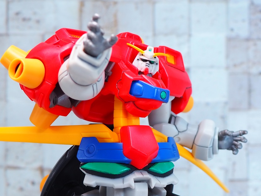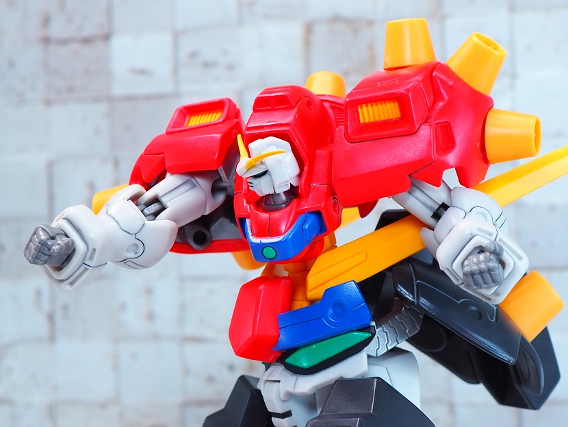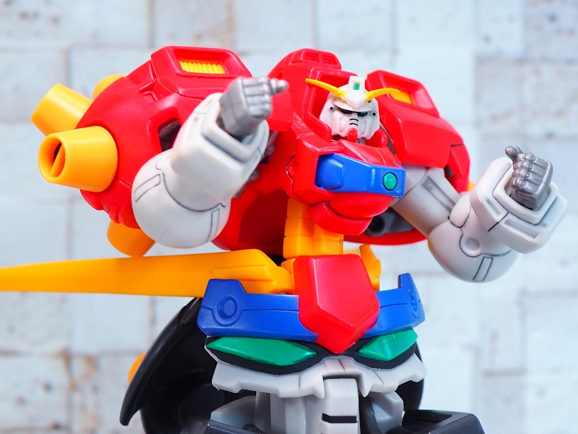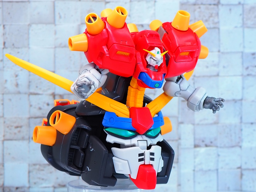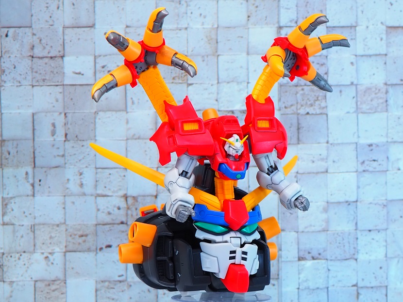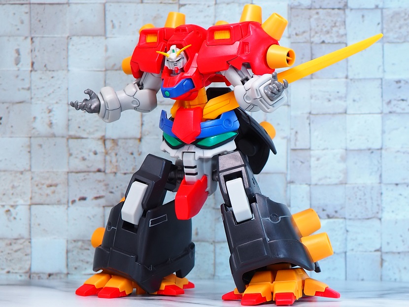 ヘブンズソードやグランドガンダムと比べると簡易な可変ギミックですが、最小限の差し替えで異型のスタイルが見事に再現されてますね。