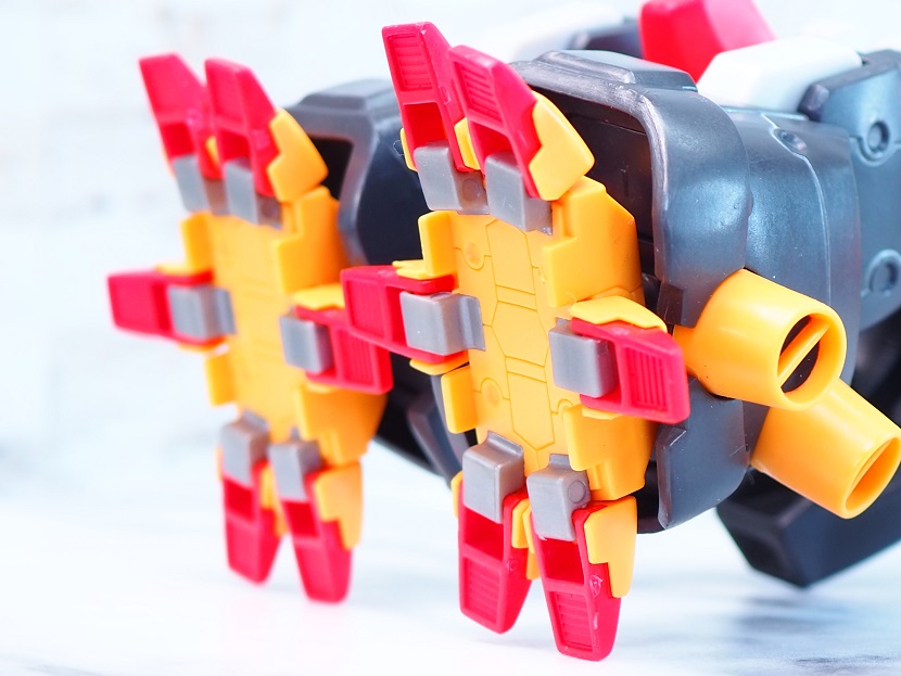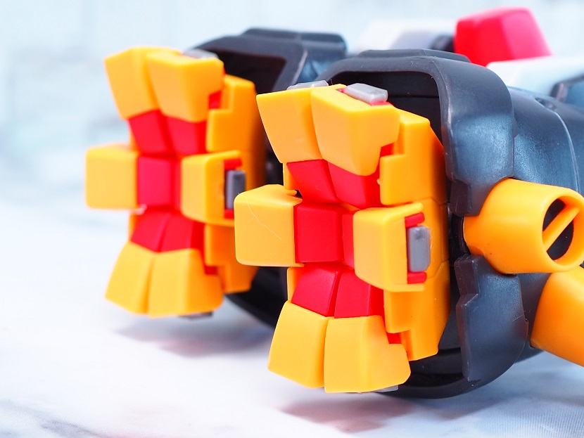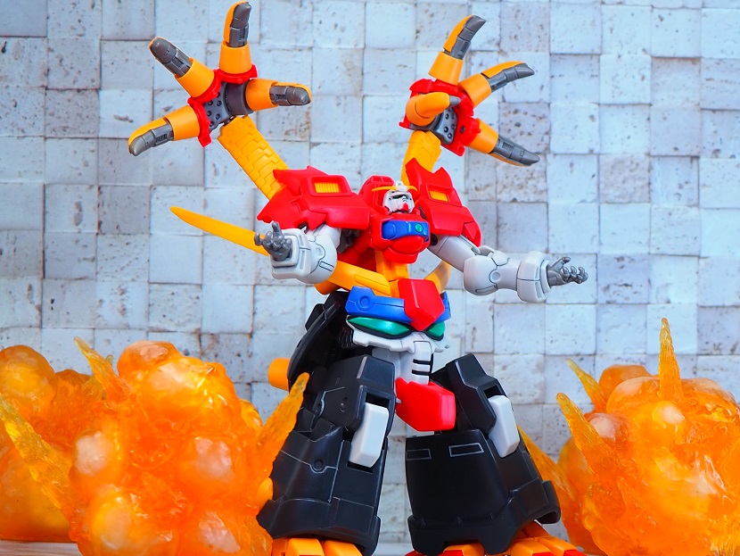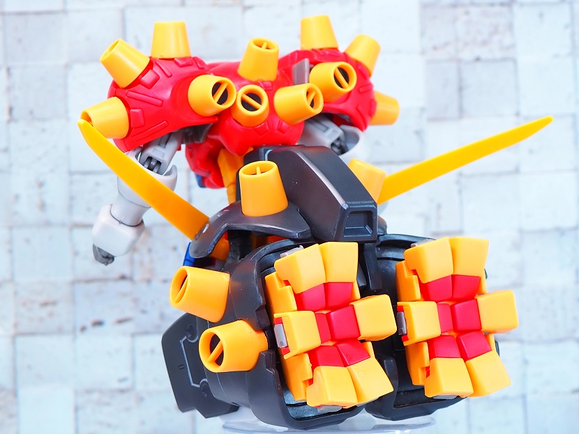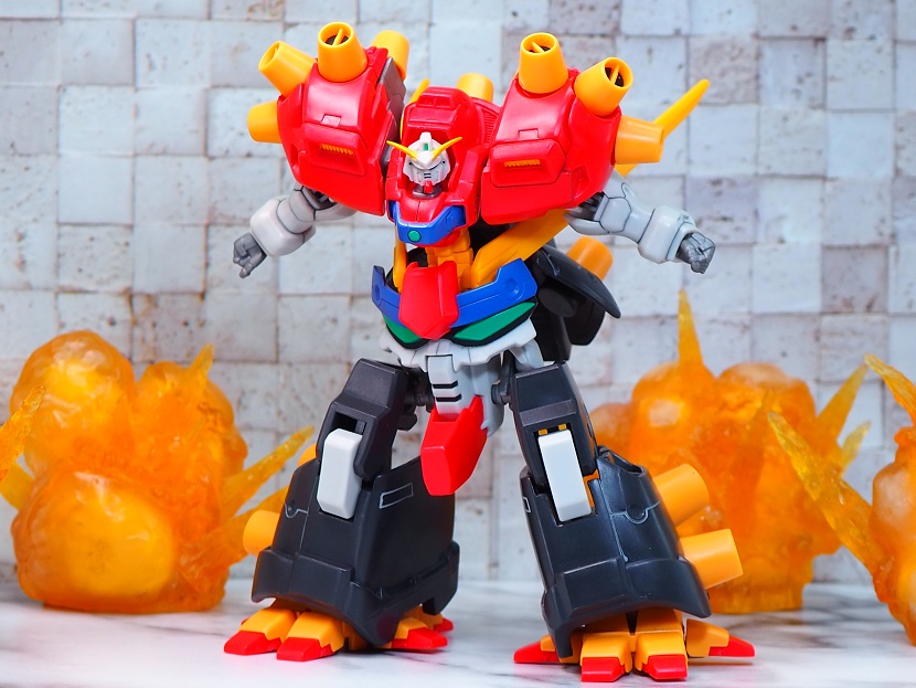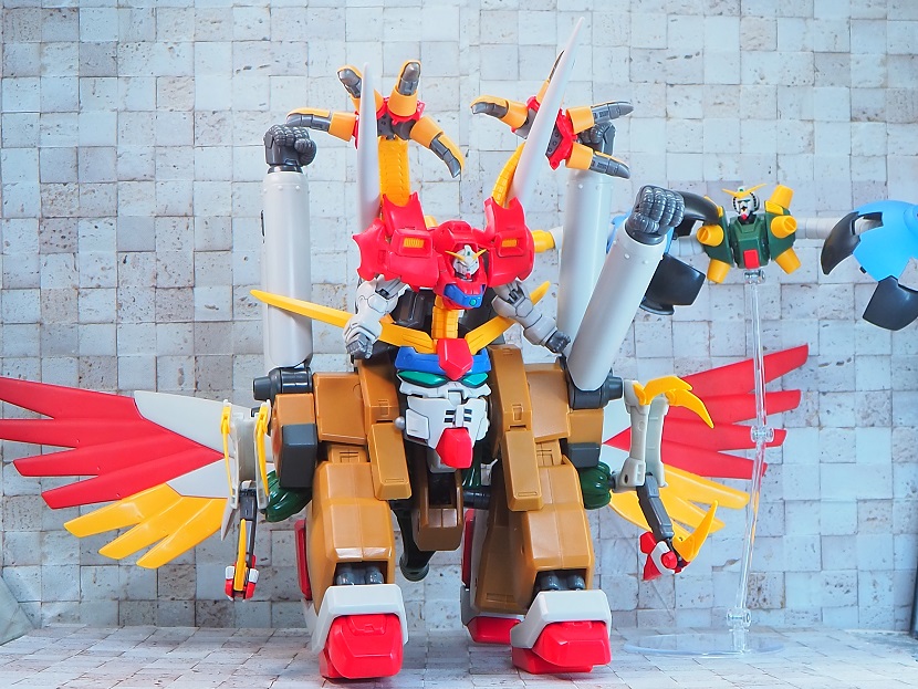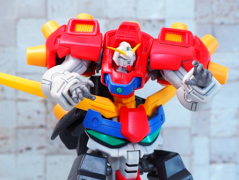 ヘブンズソードやグランドガンダムと比べると簡易な可変ギミックですが、最小限の差し替えで異型のスタイルが見事に再現されてますね。