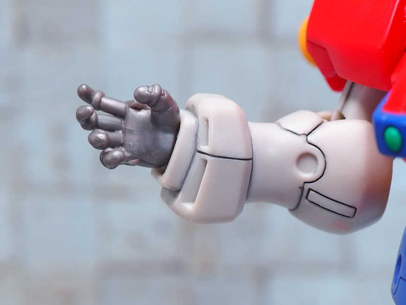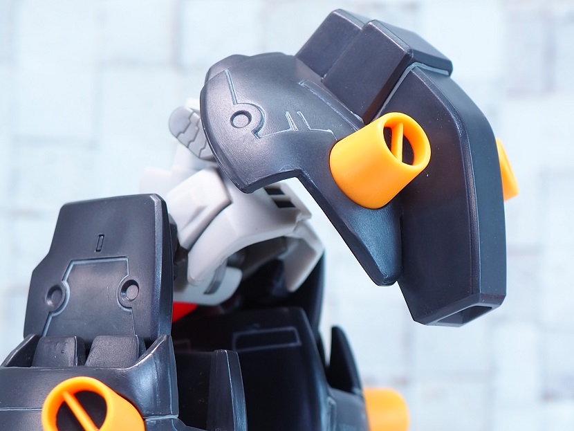 デザインは左右対称。大きな肩アーマーと太ましい二の腕でかなりマッシブなフォルムです。
