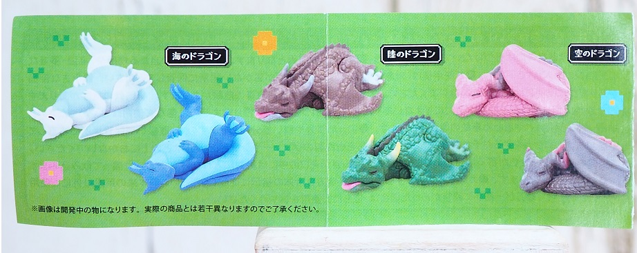 内訳は同じ造形のドラゴンが3種でそれぞれカラバリが1種ずつといった感じになりますね。