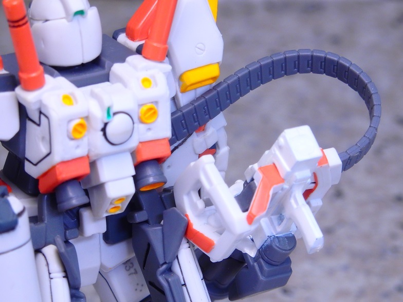 弾倉からランドセル下のリア部を通してガトリングガンへと接続。こちらはパーツがポロリしやすい感じです。