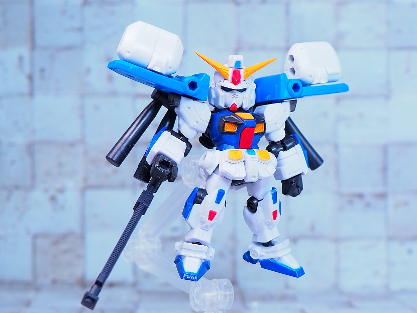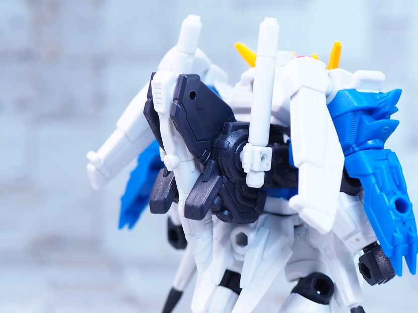 左右のブースターユニットに中央のテールスタビレーター、そして背部ビームカノンを装備。