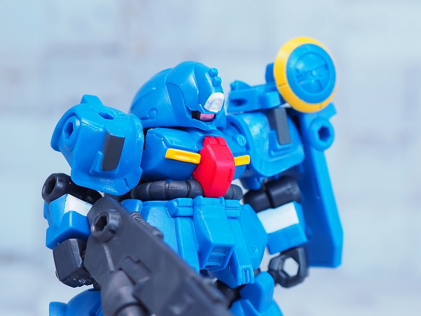 頬のダクトとアンテナが塗装、頭部のインコムは別パーツ造形で取り外し可能ですが、パーツが円状ではないので武器としては使えません。