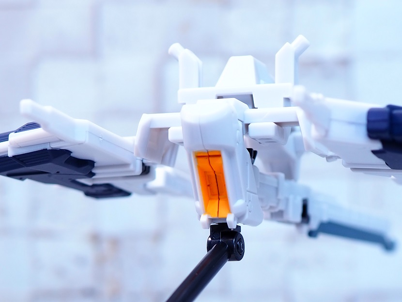 本機の機首部であり下部にビームキャノンを固定装備。胸部装甲ユニットは分割可能です。