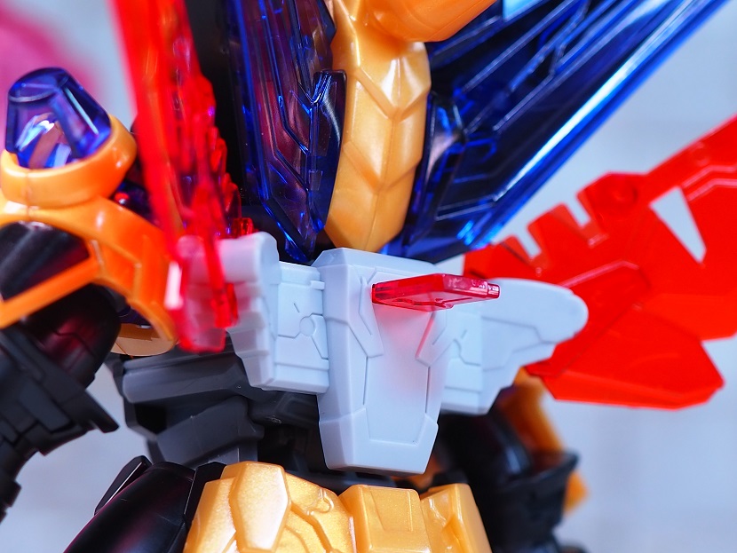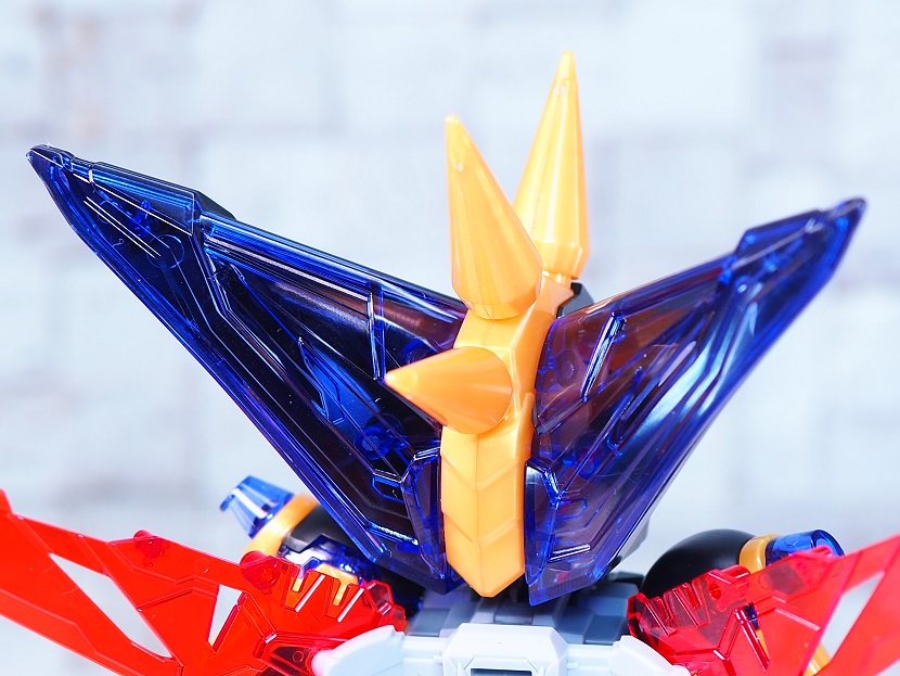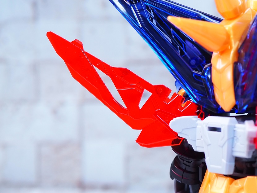 頭部アンテナ、口に当たる部分、さらに目の下の模様部分がクリアパーツによる再現。