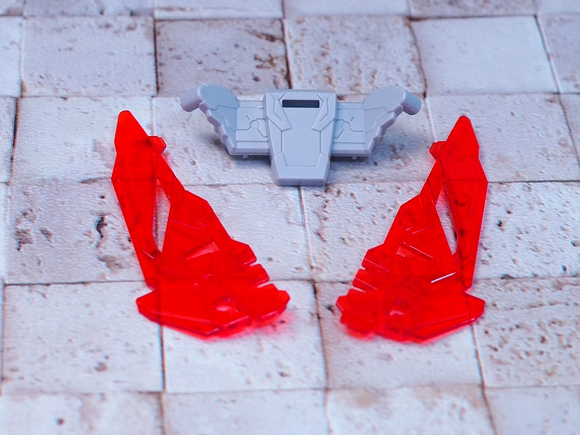 腰アーマーはクリアパープルとクリアレッドをそれぞれはめ込むことによる色分け。