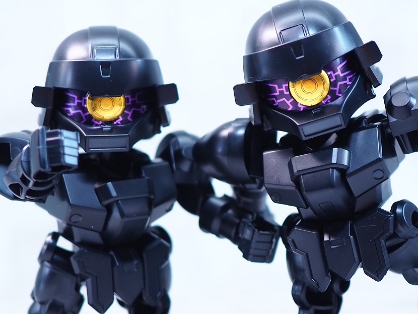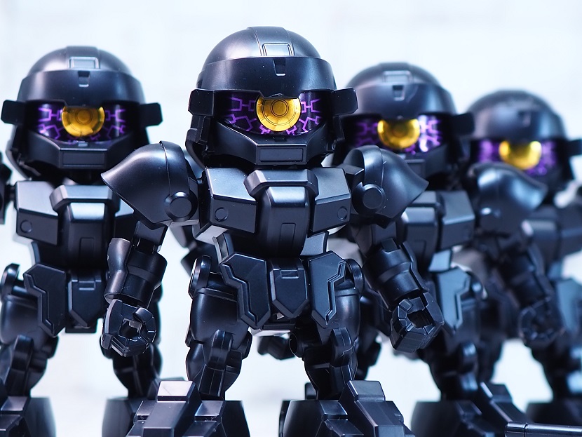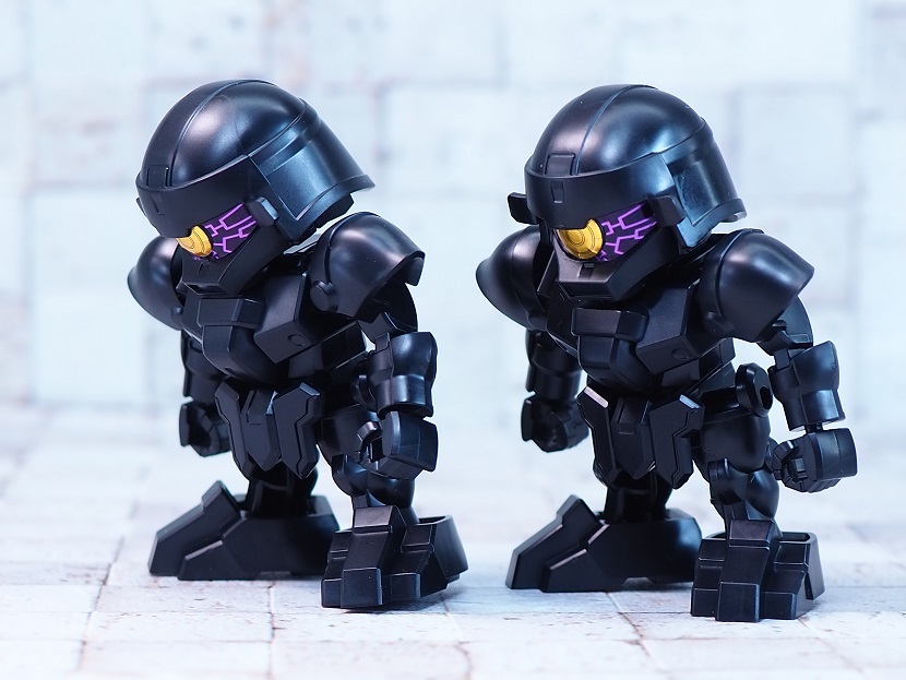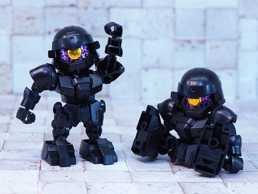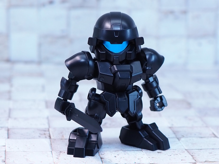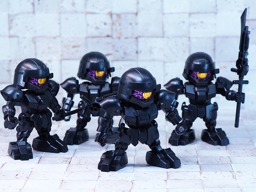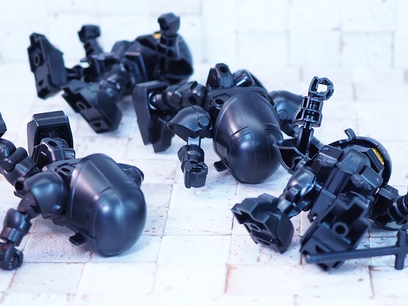 成型色はブラックの単色、1体当たり全12パーツほどのシンプルな構成で組み立ても非常に簡単です。
