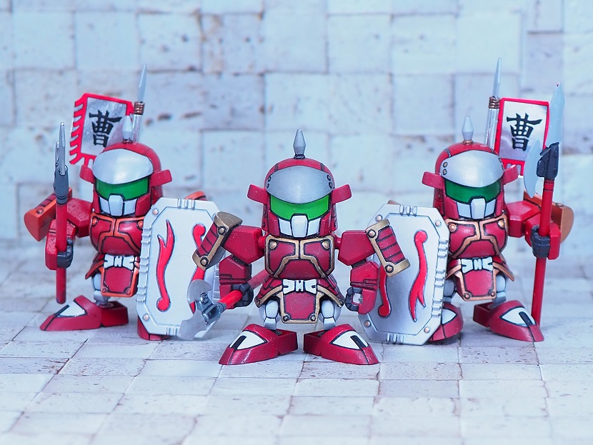 三国伝の部隊兵は3体で440円という価格。コスパ的にはかなりいいんですが、首が動かないのですこし遊びづらい所がありますね。