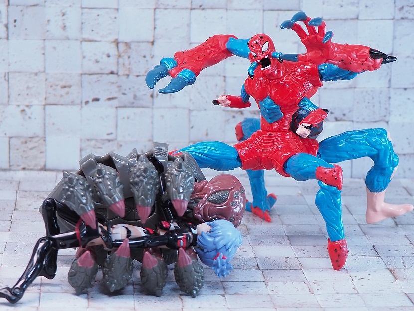スパイダーマンの外見が残っているのでそれが余計に気持ち悪く、不気味さを醸し出していますね。