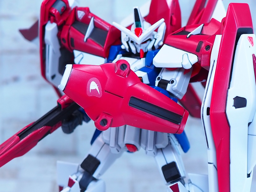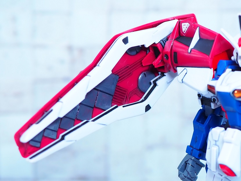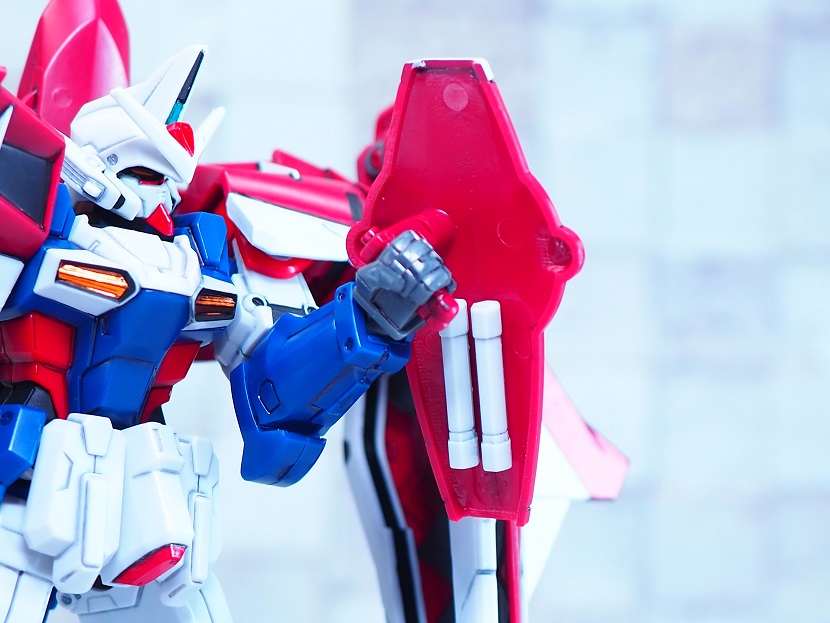 両肩アーマーが重いので、肩が下がらないようにパーツを接着したほうがより遊びやすくなるかと思います。