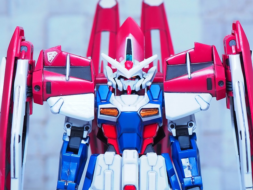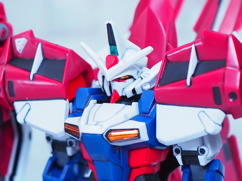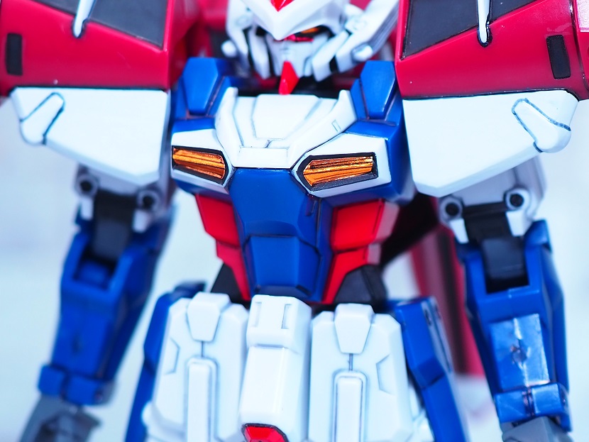 胸のダクトや頭部センサー、アンテナ、顎、ツインアイ部がシールでの色分け。