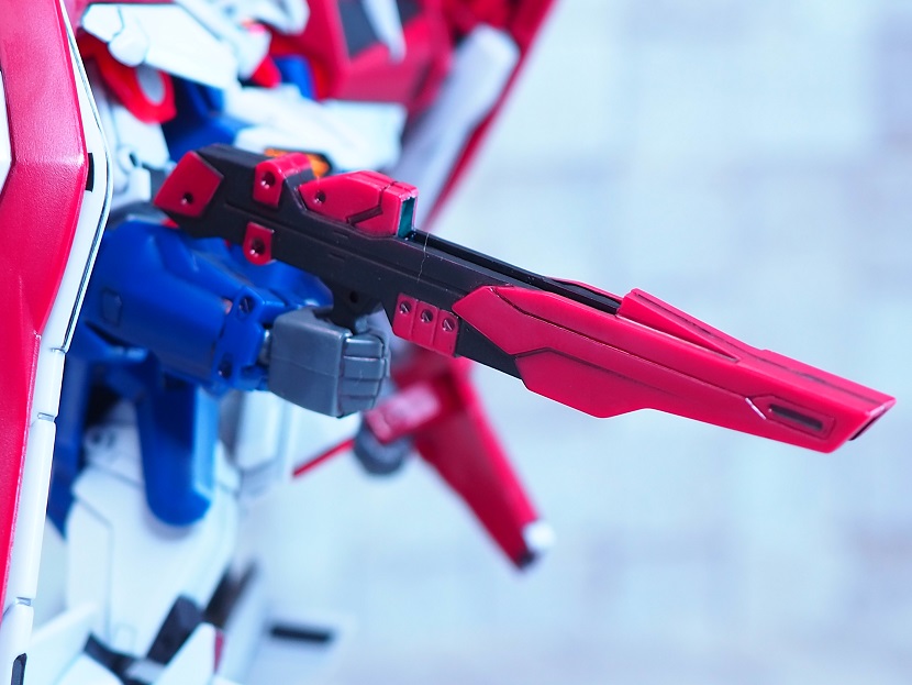 肩アーマーのホワイト部分は塗装が必要です。換装装備武装なので、特徴的なリニアロックボルトの造形があります。