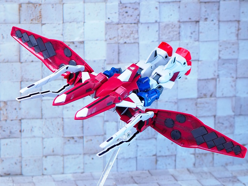 とはいえ、ほぼ本体をうつ伏せにした状態なのでウイングガンダム、ウイングゼロ、エピオンよりも簡易的。