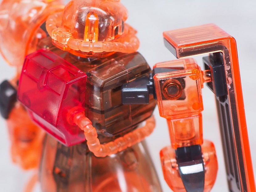 頭部、腰、脚部の動力パイプは軟質素材が採用されておりますが、なんとこちらもクリア成形になっております。