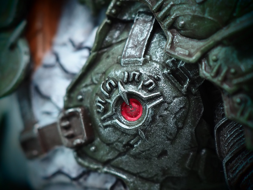 モスグリーンのアーマー部には少しシルバーが吹きかけられており、重厚感ある仕上がりに。