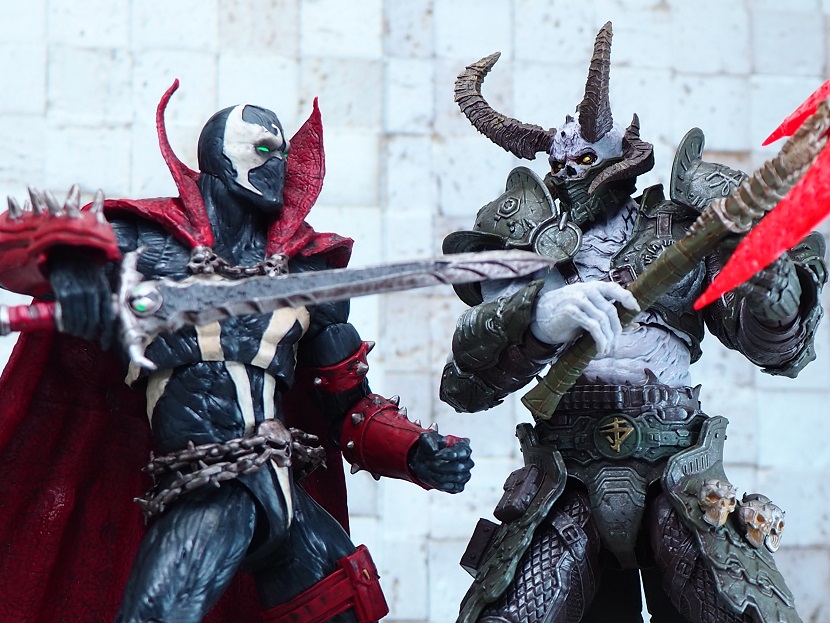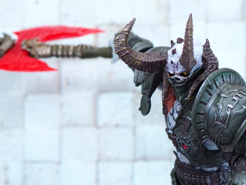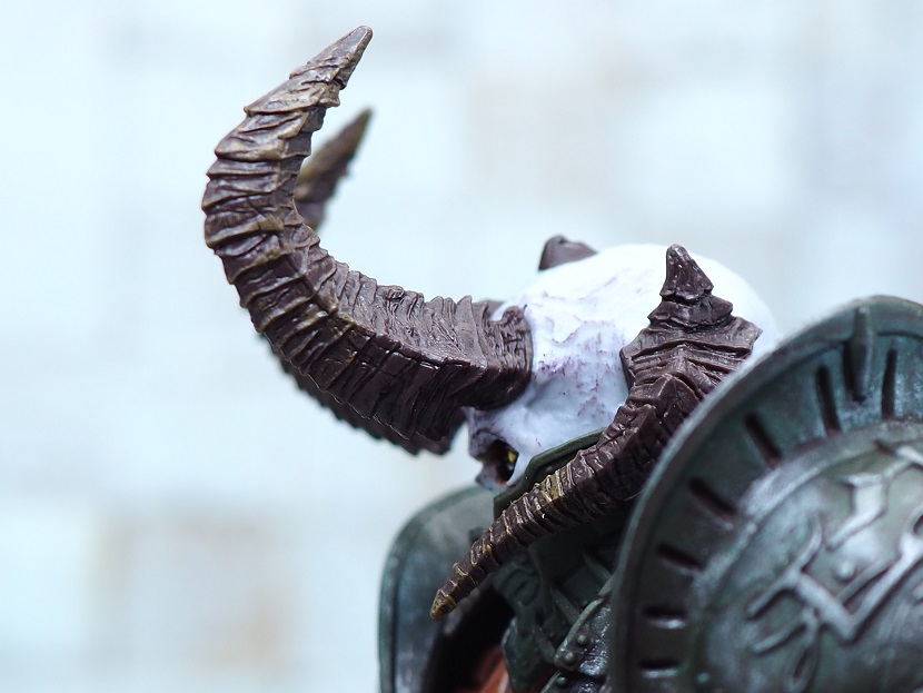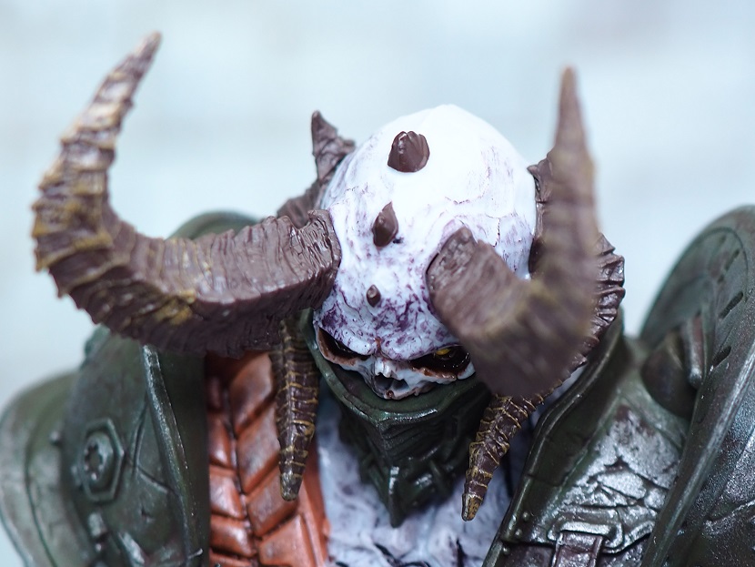マスク部分など細かく見ると部分的に塗装が省かれているんですが、禍々しいツノなどの精巧な造形は流石マクファーレントイズと言ったところ。