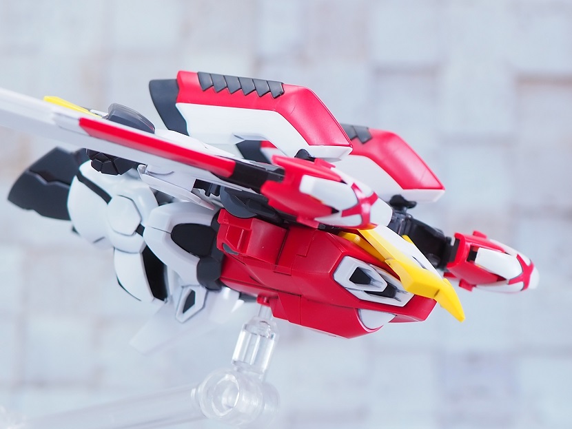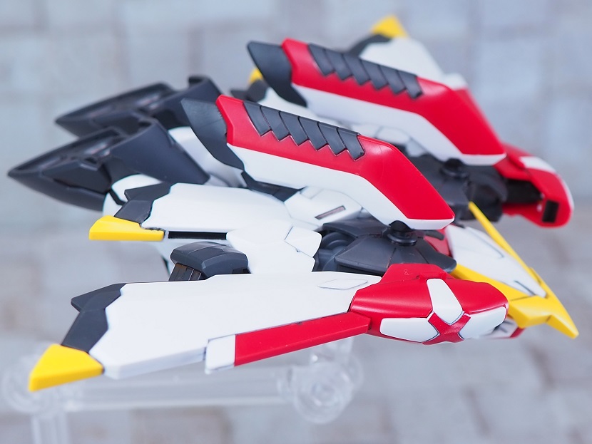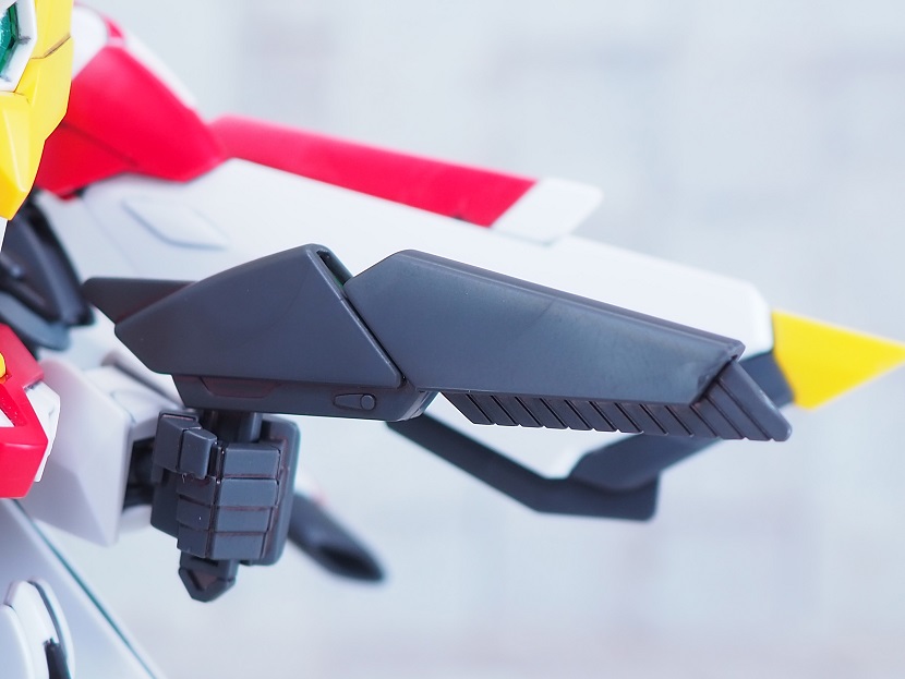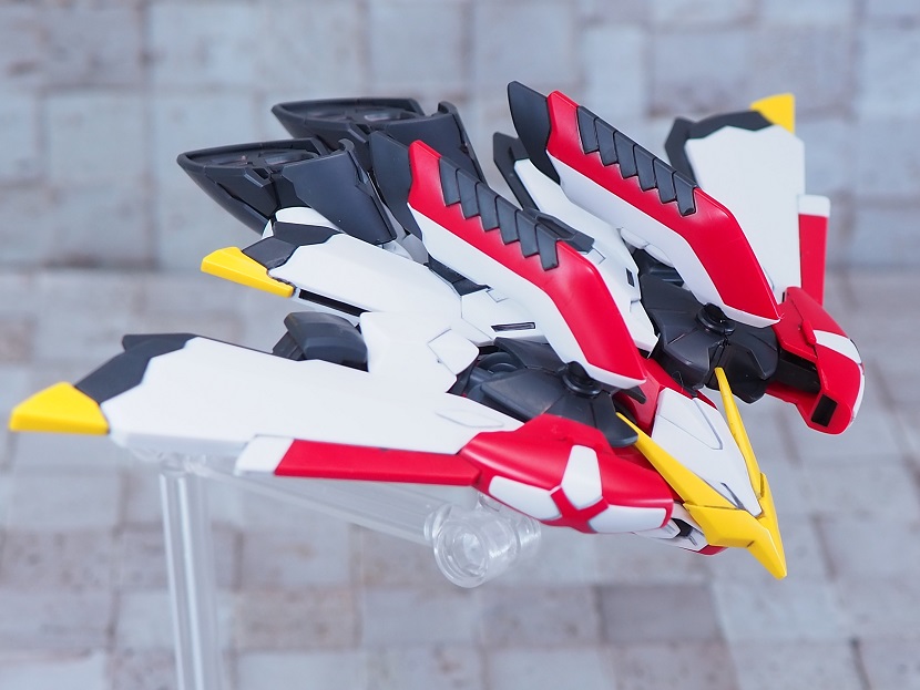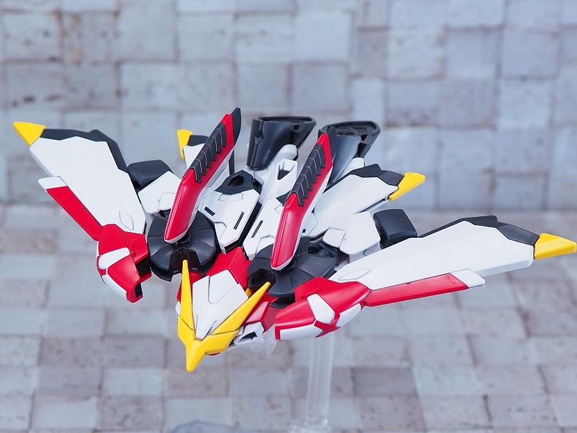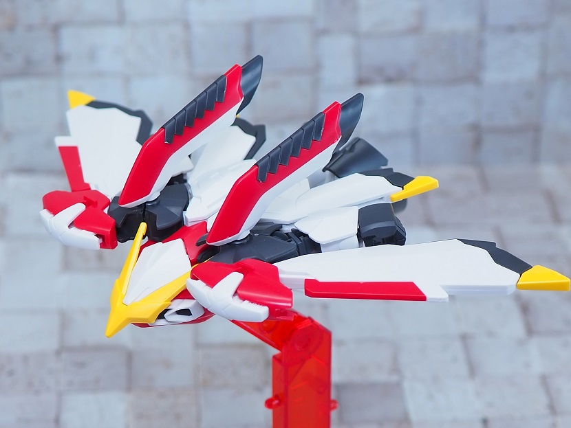 両腕部のウイングはそれぞれボールジョイント接続でアクションポーズに合わせて動きをつけたり、パーツを逃したりと表情付けが可能。