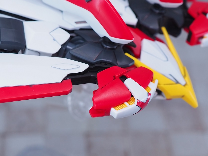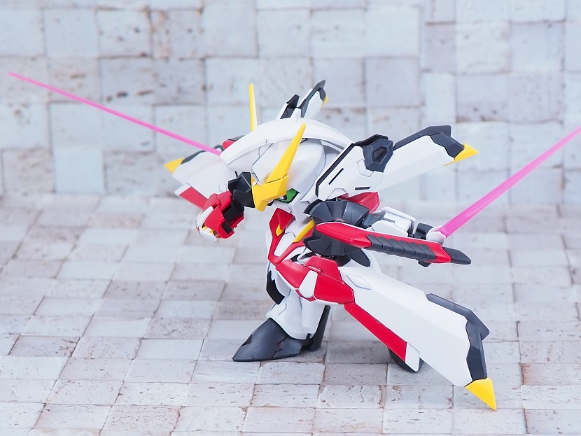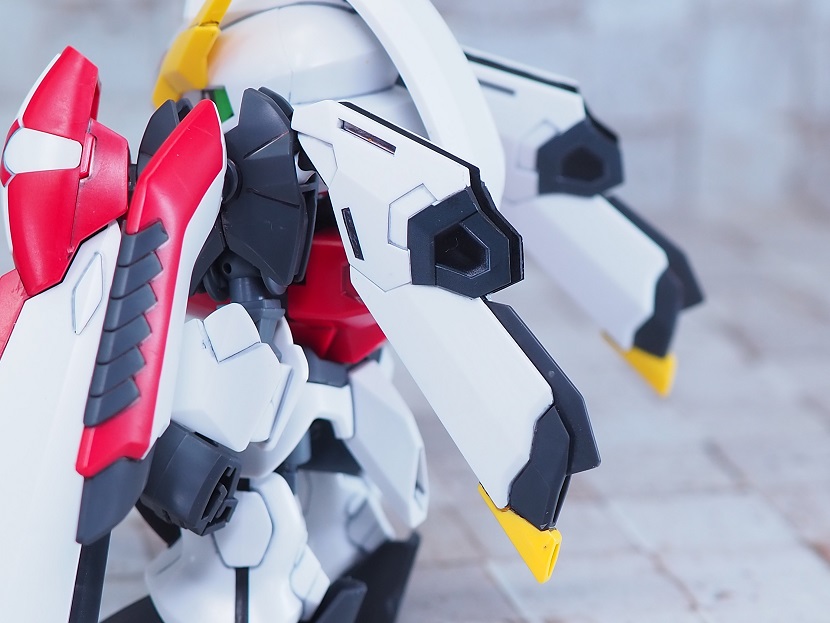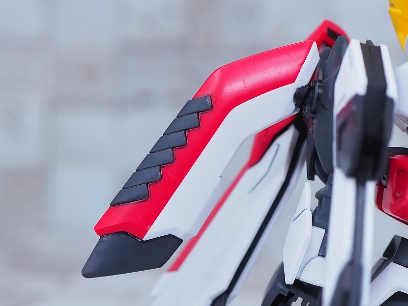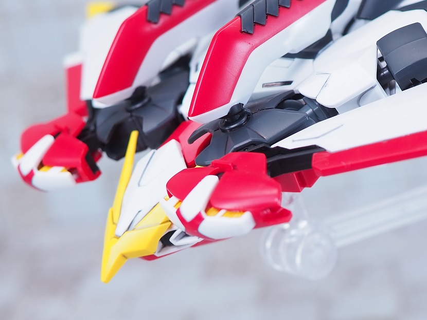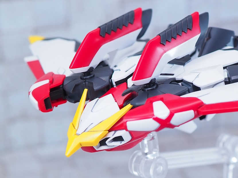 両腕部のウイングはそれぞれボールジョイント接続でアクションポーズに合わせて動きをつけたり、パーツを逃したりと表情付けが可能。